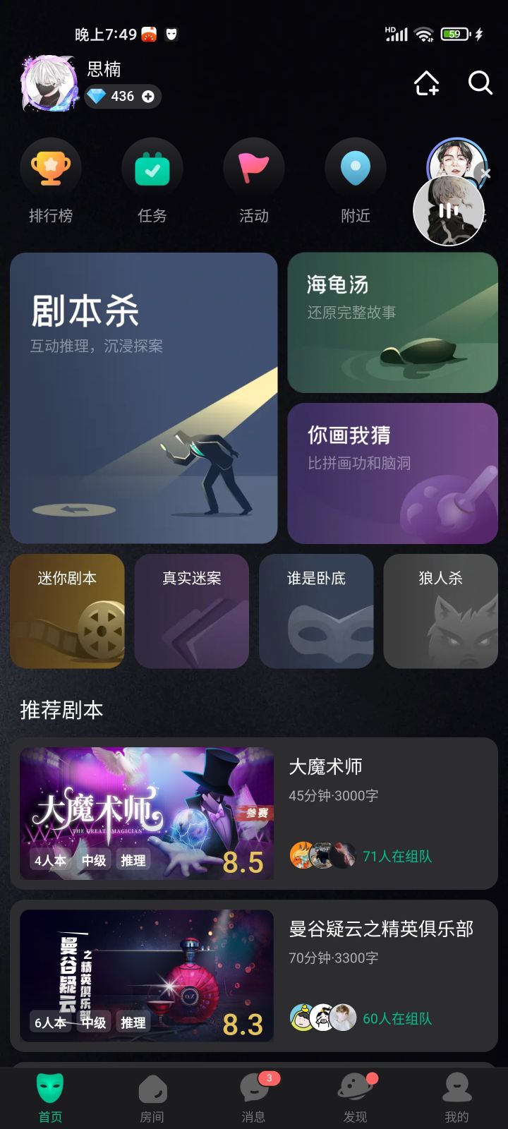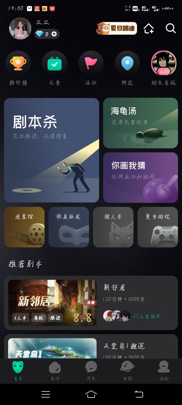 自己在家无聊想要出去玩剧本,可朋友没时间怎么办?不用担心,大家看一看《谁是凶手》App里面剧本丰富,设有多种风格,有大家喜欢的“推理”,“科幻”,“解密”等等,我们可以找朋友开黑,也可随缘匹配路人,进行一场烧脑の推理,推理过程紧张刺激,游戏体验不亚于在现实里玩,如果大家是萌新小白也不用担心,这个APP分为入门,简单,困难等~我自己也是剧本杀萌新(小白),大家可以来找我,一起推理烧脑案件~嗯哼哼,还有c位抢唱~很多声音好听又温柔的声优大佬哇 非诚勿扰包办cp!等等等不仅有刺激的推理剧本还有很多小游戏!今天分享到此结束,喜欢剧本杀的朋友可以关注我,也可下载《谁是凶手》来找我玩,悄咪咪的告诉你加我游戏id21840,可以带你定期组队喔~