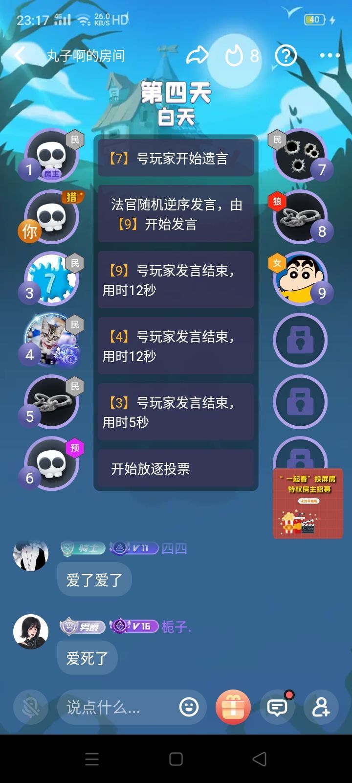 经过大家的投票我以卧底的身份出局,场上还剩一个卧底,虽然我已经下场但还是在听大家的发言: