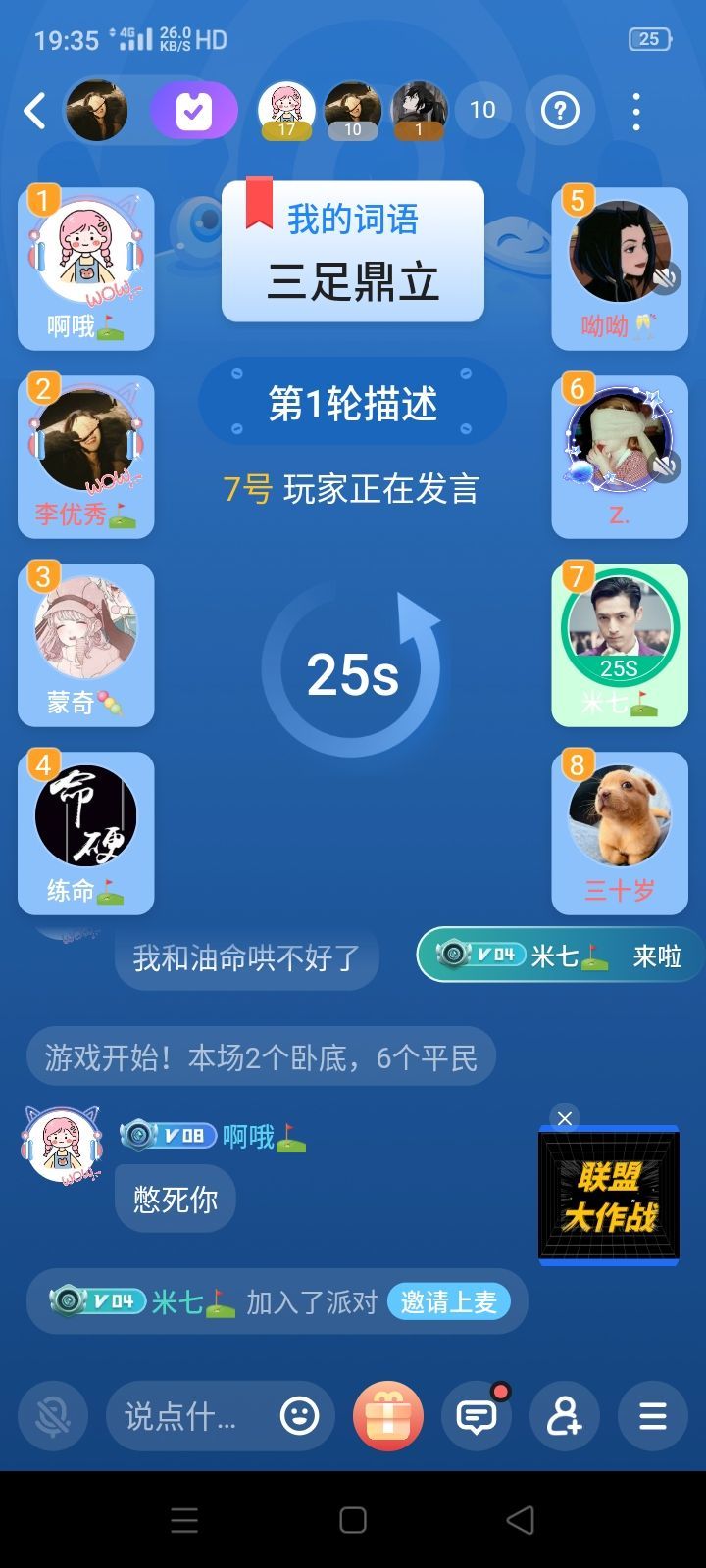 如图这场谁是卧底的游戏中,我拿到的词为——三足鼎立。