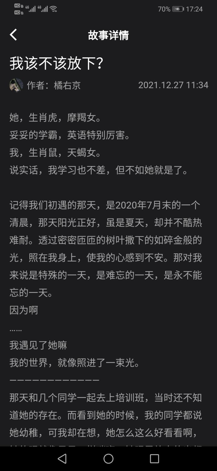 嗯…一开始很认真的看,看完后一脸黑人问号?故事的题目是:我该不该放下?一开始楼主还以为这是个很纠结的感情故事。看完后发现,是我天真了🙈首先,楼主认为作者应该先确定下自己的取向。之后再去决定自己的感情。虽然说楼主认为喜欢无关性别,但毕竟作者才上高中。所以我认为确定自己的取向再说放不放下的事情。虽然年少的感情激烈又难以克制,但正因如此。更加要慎重。