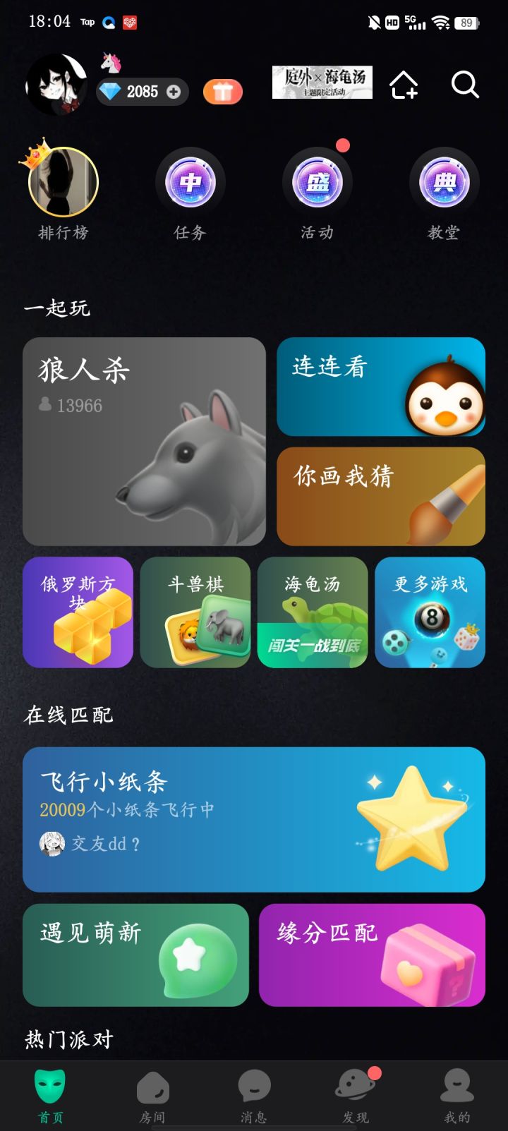 非常非常推荐这款游戏,非常好玩,能认识很多的朋友,里面的朋友也非常友善,很热情,在家无聊时可以上来玩,消遣一下,里面的小游戏都非常好玩,强推狼人杀和海龟汤,海龟汤都特别有趣,狼人杀非常好玩,非常正规,有不良人出现会及时处理,总之非常推荐大家去玩