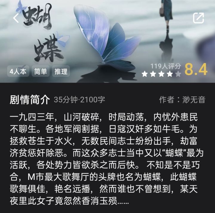 剧本杀新本推荐💜四人本《蝴蝶》