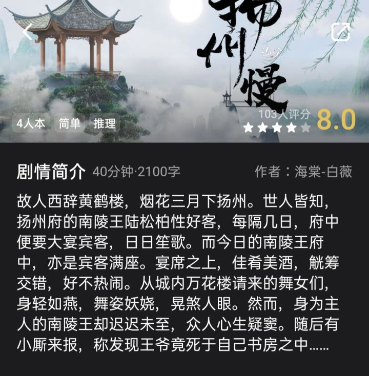 剧本杀新本推荐💜四人本《扬州慢》