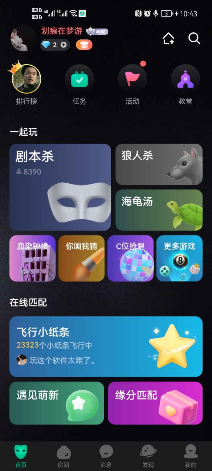 我觉得吧这个游戏真的挺有趣的,刚开始玩的时候没觉得怎么样,就是开始玩剧本杀,狼人杀还有海龟汤,后来发现了还有语音聊天房,可以交朋友,每天在里面还可以k歌,快玩起来吧~现在一天不玩就难受😂