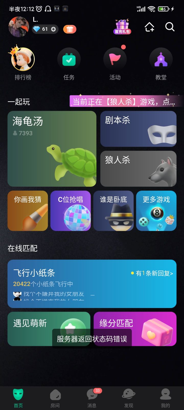 非常非常推荐这款游戏,非常好玩,能认识很多的朋友,还交到了对象,里面的朋友也非常友善,很热情,在家无聊时可以上来玩,消遣一下,里面的小游戏都非常好玩,强推狼人杀和海龟汤,海龟汤都特别有趣,狼人杀非常好玩,非常正规,有不良人出现会及时处理,总之非常推荐大家去玩