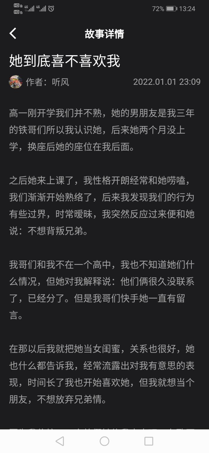 鉴定师-她到底喜不喜欢我?通篇下来,楼主其实没太理清关系。可能是这里面的情节跟信息太多了🤣作者喜欢上了兄弟的女朋友,后面作者跟女生在一起然后还见了家长?emmm…不管女生到底是什么想法但是作者一直说我知道她是兄弟的女朋友,我要克制。最后他们两个分手与否,其实都是女生的一句话,作者也没有找兄弟确认过。我只能说,对待感情要慎重为好