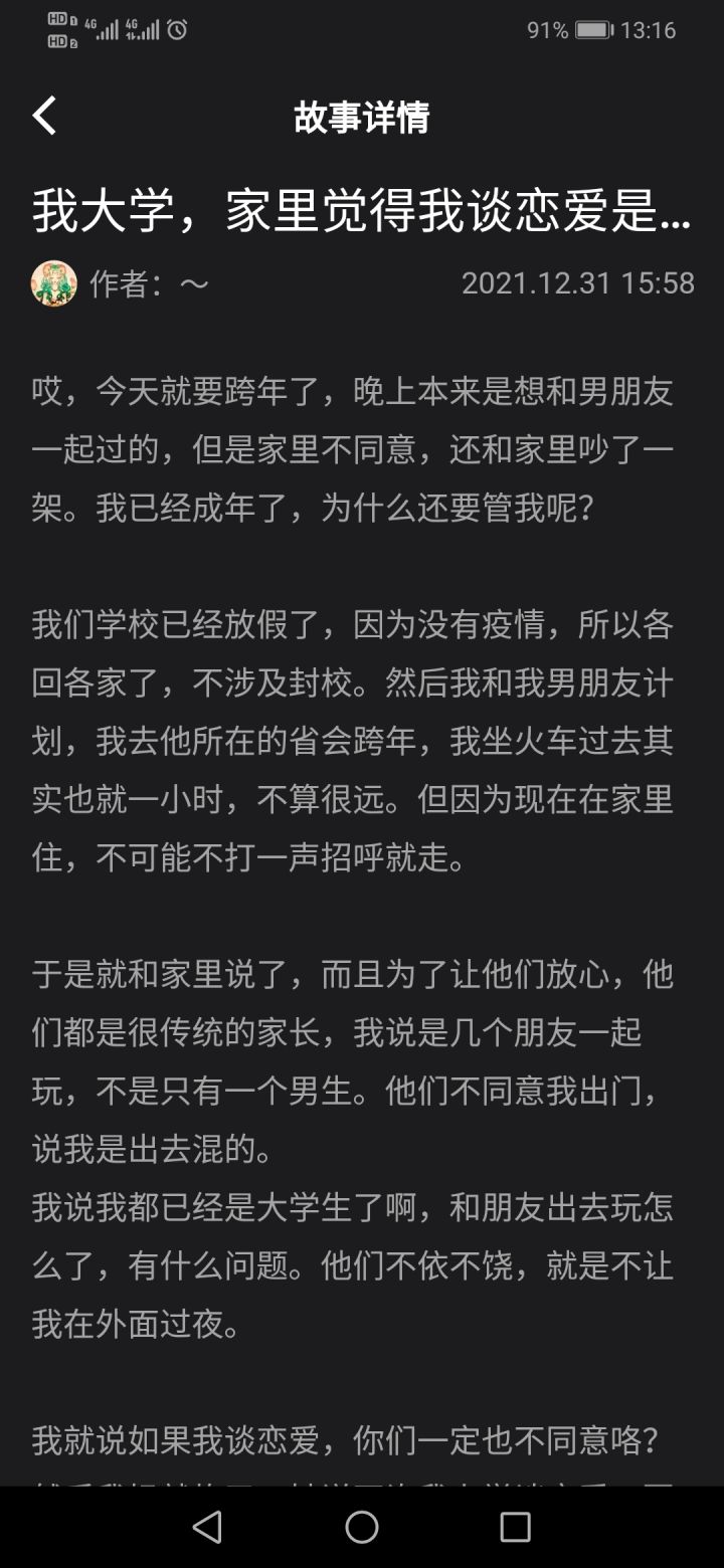 鉴定师-我大学,家里人觉得我谈恋爱是早恋emmm,如题。其实我想对作者说,成年不是你自由的理由。通篇下来,楼主的观点是,首先你谈了朋友但是一年就过夜嗯,怎么讲。喜欢是喜欢,但还是要保护好自己。其次,你说家里人是在控制你,其实不如说你是被大环境影响,觉得自己成年就该独立,就是可以自己拿主意,但不是的。建议作者跟家里人开诚布公的谈,实在谈不好那就再说。但希望可以理智一点