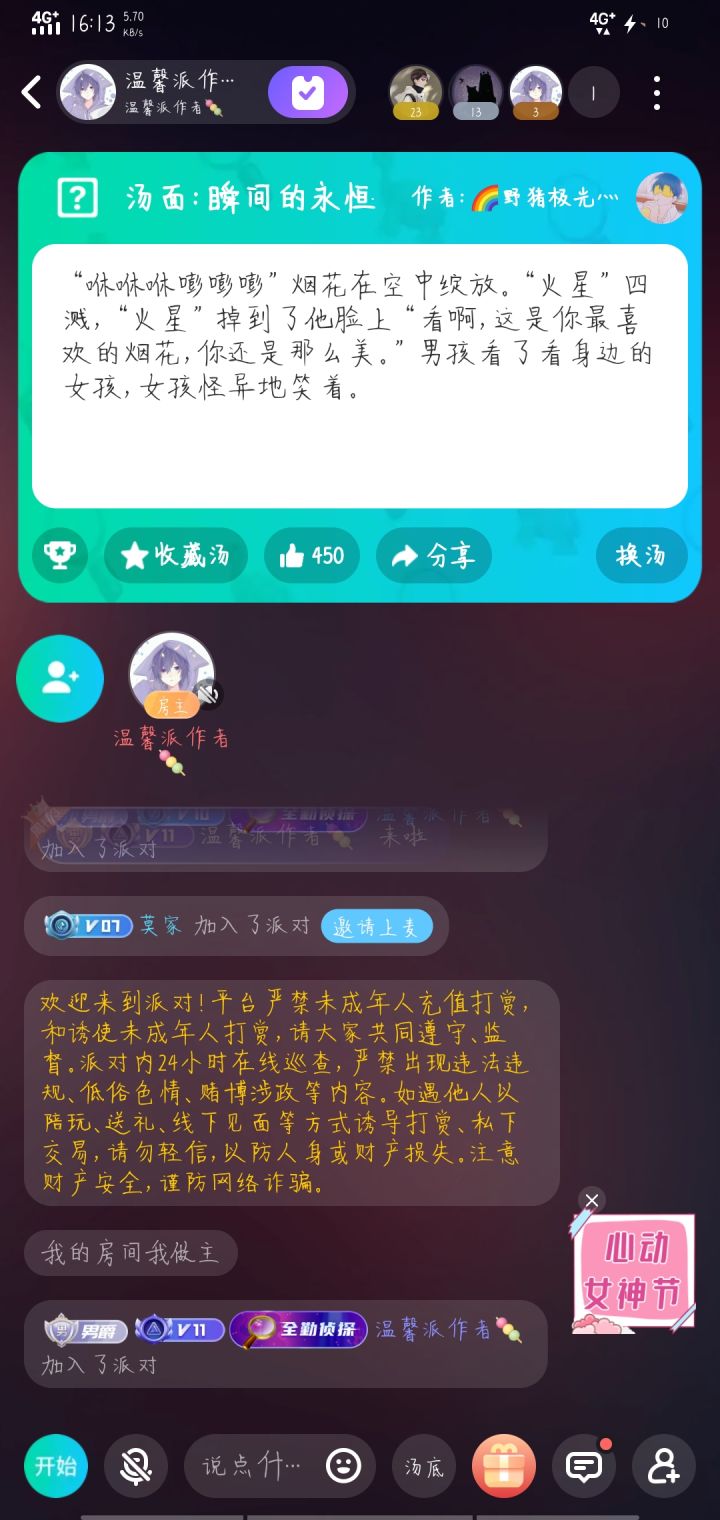 很不错的一款游戏 我在上面交到了很多的知心朋友 集推理 娱乐 交友 k歌为一身 很不错很适合哪些想玩剧本杀但是又不能出门的朋友们 这个真的是个很不错的选择
