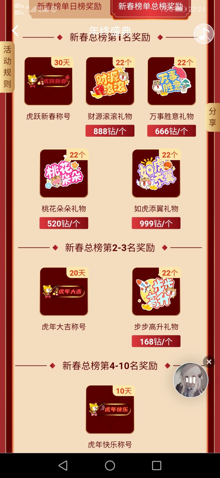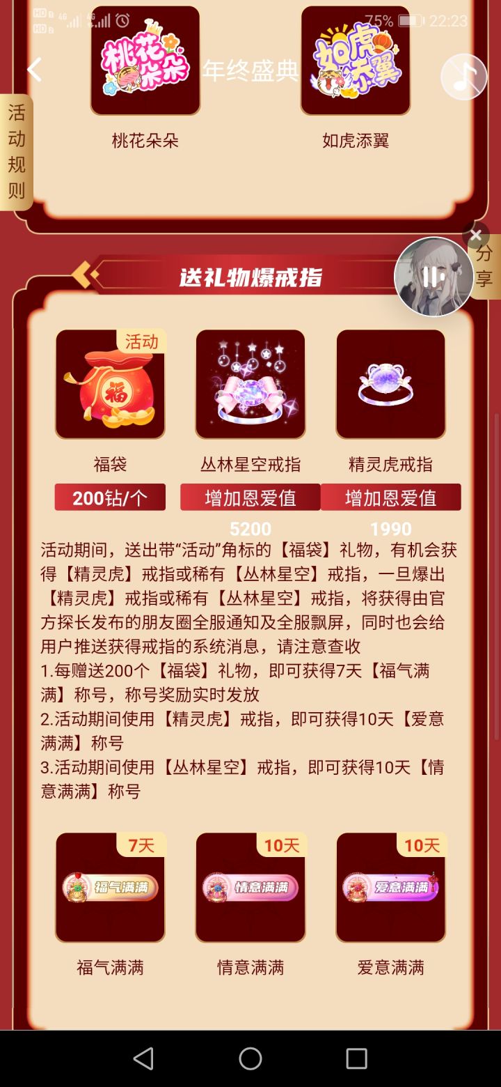 1.每赠送200个[福袋]礼物,即可获得7天[福气满满]称号,称号奖励实时发放