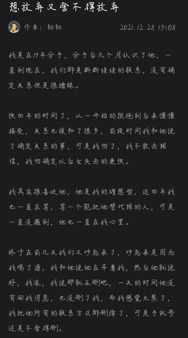 看了你的故事,再看你的提问, 很明显的是你心里一直有他。 你的提问都是再劝导自己,怎么才能和他继续下去, 怎么解决他吊着你的感觉既然如此, 为什么不见一面呢, 与其说他吊着你其实你也再吊着他, 既然他是你的理想型, 为什么还要心里想着有个人去代替他呢, 既然已经相处了4年还有联系, 为什么不能用另一个身份继续4年下去呢, 不要怕被伤害, 越裏挟自己,不打开内心, 离眼前的爱越远, 还是那句话, 打
