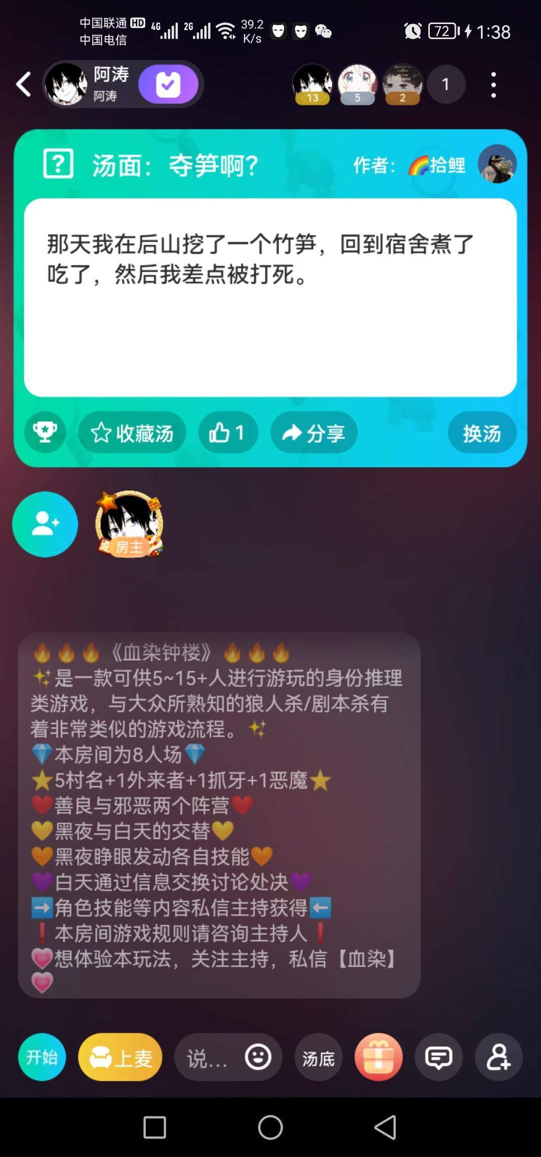 🥀现在来说一下游戏的玩法。海龟汤呢是一个情景还原类的游戏,你们可以向房主提出线索或者自己的疑问。房主通过海龟汤的汤底来回答是或者不是或者不重要。