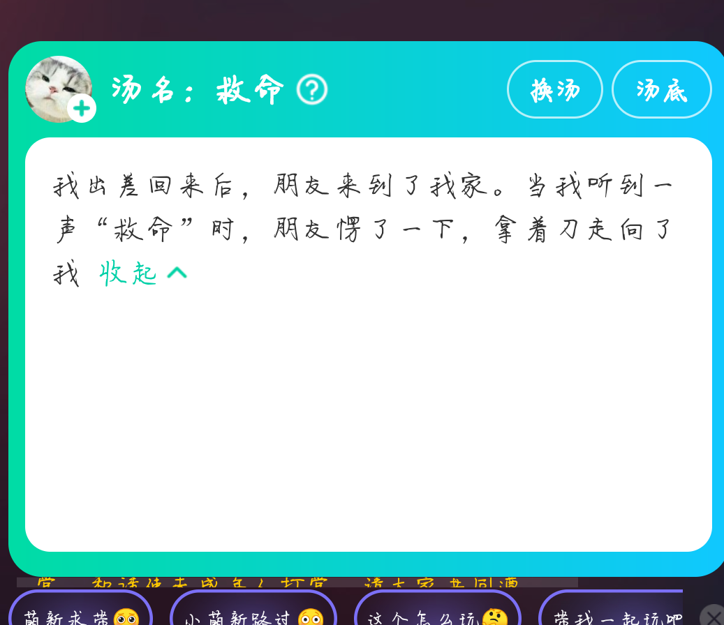 🥀现在来说一下游戏的玩法。海龟汤呢是一个情景还原类的游戏,你们可以向房主提出线索或者自己的疑问。房主通过海龟汤的汤底来回答是或者不是或者不重要。