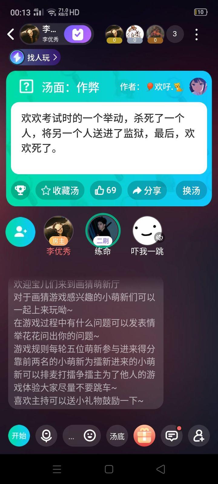 海龟汤是一个情景还原类的游戏,需要玩家们问房主问题,然后房主会回答玩家们“是”“不是”“不重要”,然后通过玩家们的线索拼凑故事的真相,大家一起来还原吧!