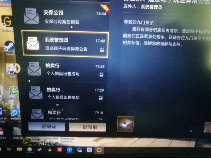目前在游戏中需要的问题1、弹窗问题。建议取消手动隐藏后弹窗会自动弹出的功能。任务弹窗与屏幕右边的活动弹窗,每次我点击隐藏后,不到10秒,就会自动弹出来。这一点非常影响游戏体验,尤其是在我想要好好看一下游戏里的风景的时候,不断自动弹出的弹窗是真的非常的烦人。2、镖子岭藏宝。这个好像是bug,我根据游戏提示到了相应的地点,却压根儿没有交互键提示。我该一寸寸的像排地雷一样排过了相应区域,依旧是没有交互键提示。而且不止我一人遇到这样的事。希望尽快解决2021.9.17