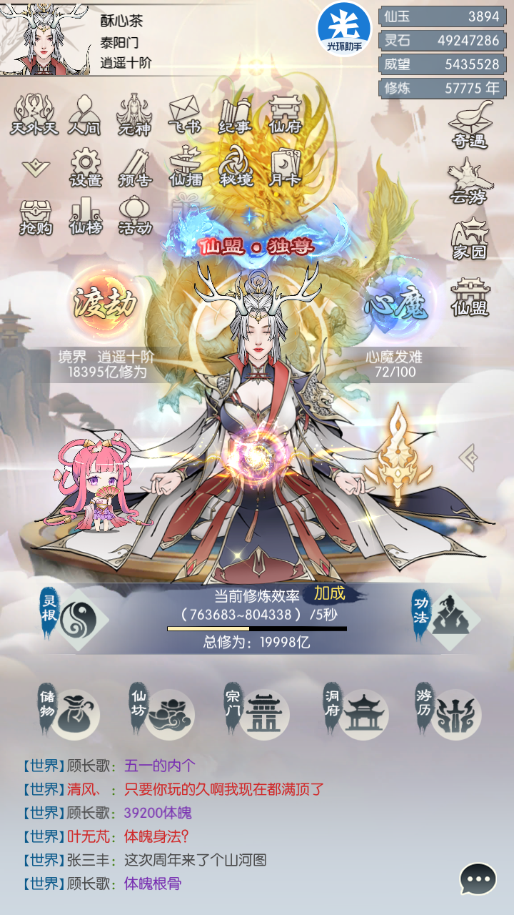 混元38服-赵灵儿-7464653161358,打卡第21天,20多抽没出货,慢慢来。偷老头化武圣的属性已经超了1.5倍了,可惜龙玉就4000+,化圣材料一样没有。。就这么干等材料。。问一下是不是准备好材料,打过老头后能把准备好材料的神通全都一次就开启了?是不是第二次开启神通不能再打老头的化武圣开启了,只能通过化尸和功德准备双倍材料才开启新神通是吗?需要准备好所有神通材料,等化武圣时一次性全部开启?