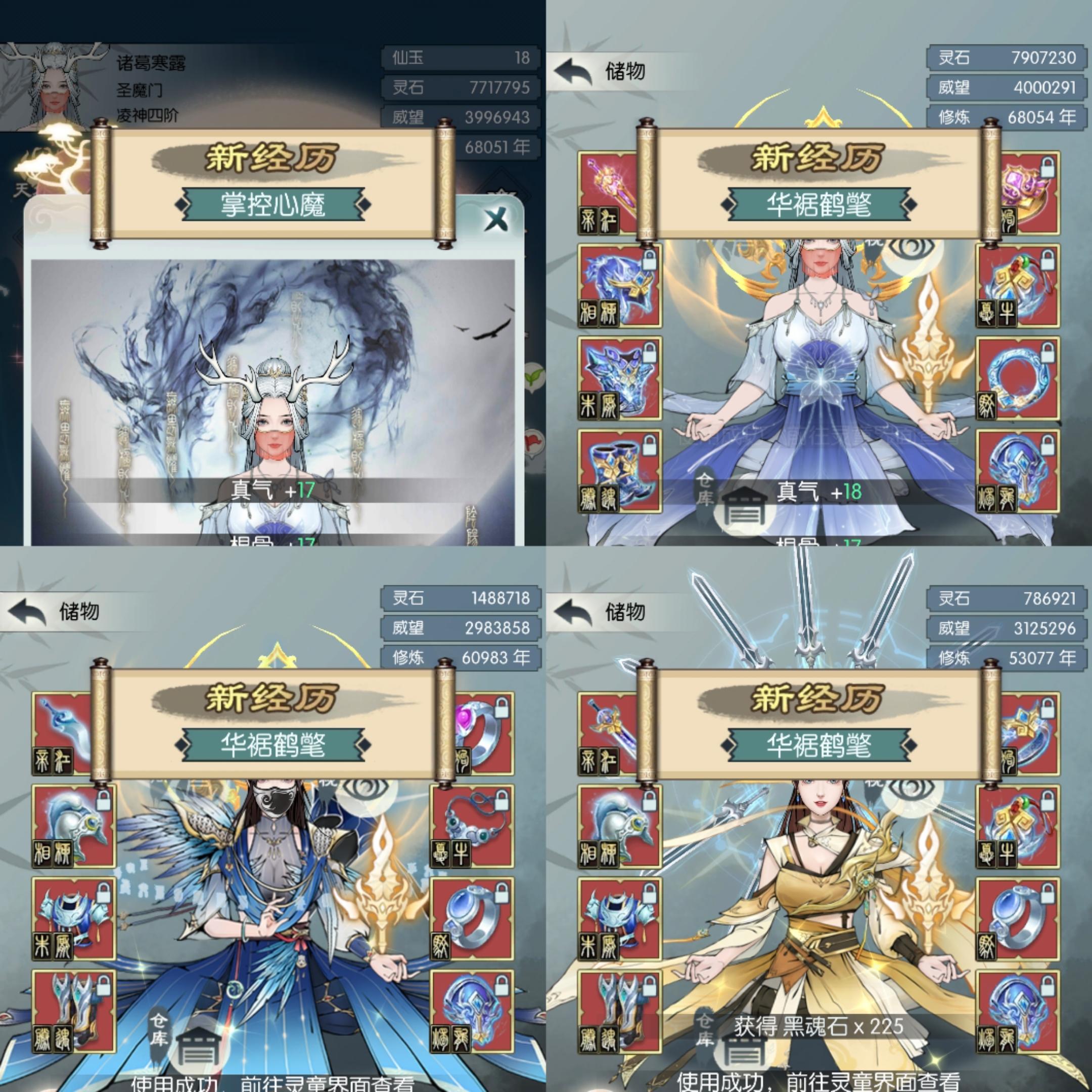 4个号的百万灵气成就达成记录~副本的高难星阵到朱雀-山艮&地坤开始也开始卡关了,慢慢熬吧💪