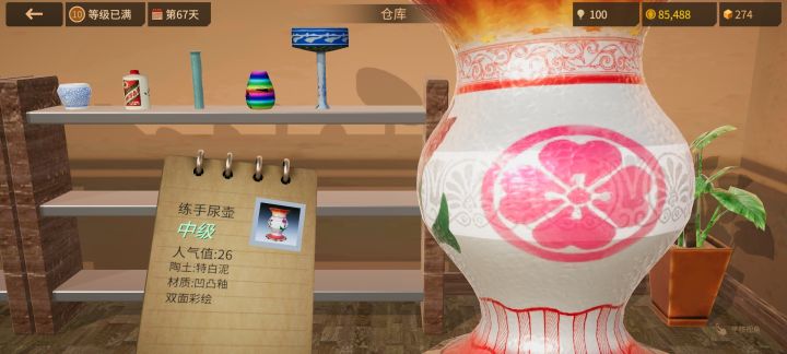 给学徒教学的作品要把所有类型的花纹都加一遍,不用加图案,这样就有多种风格偏好的作品,适用于不同偏好的学徒教学。最后审视降一下级就完事。至于纯色偏好我都不管,适用性太低了,而且学徒的初始偏好都没有纯色。※※※※※※※※※※※※※※※※※※※※※※※※※关于传说级,只要满足条件就很简单:1、陶泥要用特白泥(要注意的是陶泥有熟练度,熟练度不够前几次做不出传说级);2、陶釉要用最贵的六种之一,