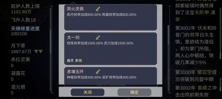 当你费劲千幸万苦弄到这样的装备的时候是不是觉得很666然鹅…这标志着本周目结束毕竟一周目给1000功德,挂机一天…没试过最牛的装备用不上几次。下面是一点小成熟的攻略:1.萌新进门不要乱点特性,最好选个美貌开局,过段时间会触发送装备。2.老萌新进门最好保证有53点以上功德,特性选气运之子.变异天灵根.美貌.(如果有富裕就再选个龙气附体,避免猝死惨剧。别问,问就是猝死过)至于为什么不选无