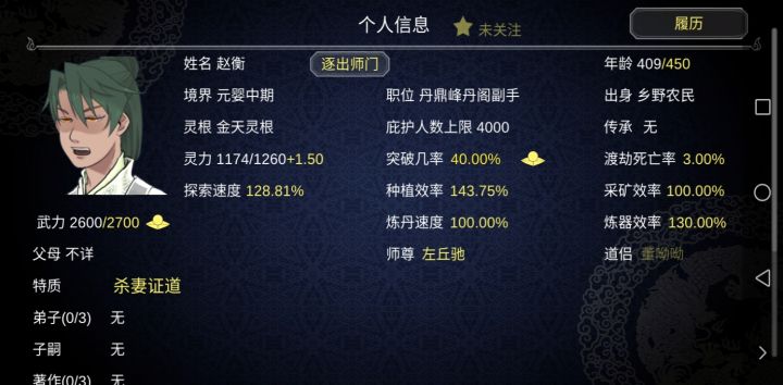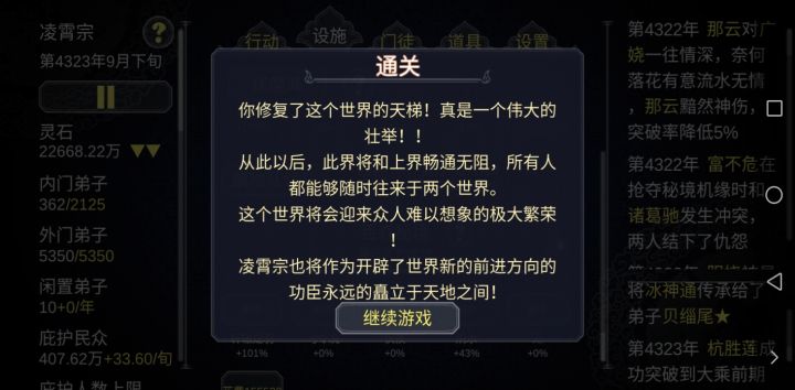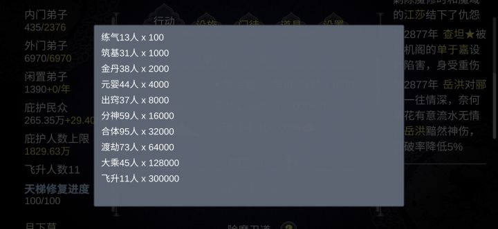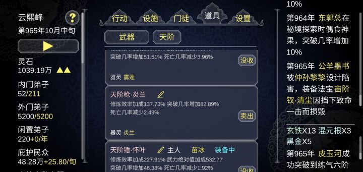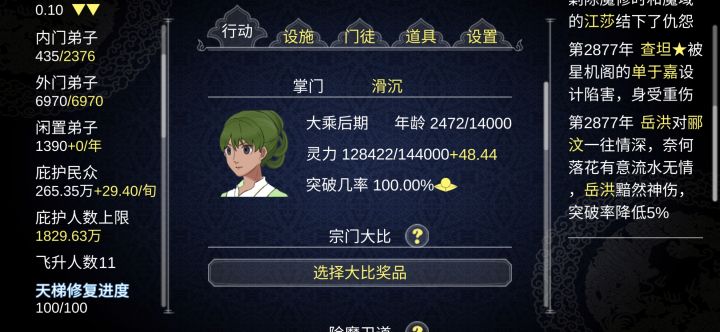 弟子超400,可招手名额破2000,游戏运行不久就会显得非常卡顿,只能自动保存后重新打开。