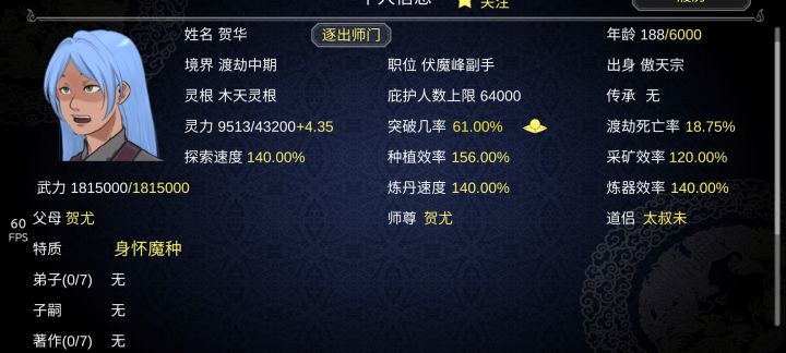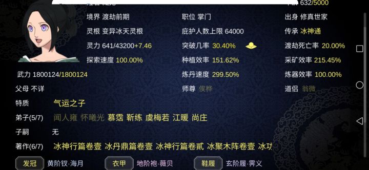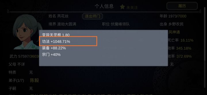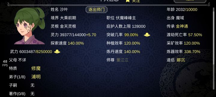 首先普及一下功法的作用就相当于一个被动技能,只要满足条件就可以享受,也就是写功法的人越多效果越好,而咱们就需要控制尽可能的让更多弟子满足条件从而达到效果第一、找徒弟尽量找同一个灵根的(比如:风灵根,因为功法只作用同一灵根的)其他一律不要,除了天选之子捞装备用。第二、弟子不让结婚(因为结婚后生的孩子灵根控制不了随机的),可以收徒弟,但是收徒弟的时候一定要点击名字查看一下灵根第三、不停的让徒弟去