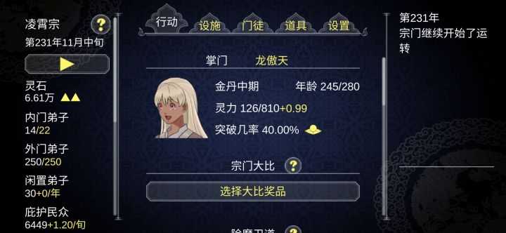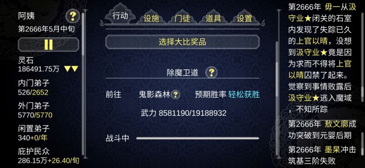 个人看法,要是能加一个,😃各宗门弟子一起的大比,派弟子去参加,然后优胜者能得到丹药或者装备的功能就好了