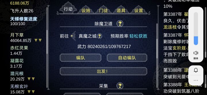肝了3天2夜终于肝玩了,这装备牛啊希望游戏作者能弄个超级高速,等待太慢了,还有这游戏希望加一个能攻打别的门派的模式,谢谢作者大大。加油顶你,这游戏真不错!😁😁😁😄