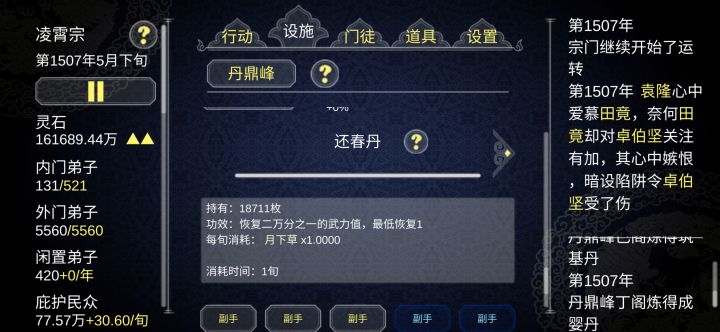 能不能出个装备一键没收,一键卖出的功能啊,整理宗门里的装备点到手发酸。5000年一周目图片为证。