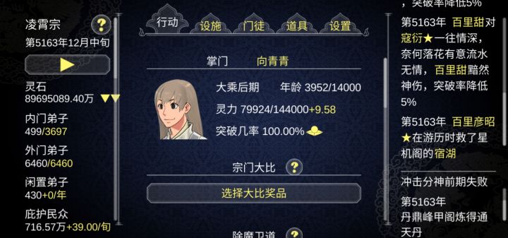 游戏还是很好玩的,就是掌门这个主角飞升后就没了,是不是应该弄一个飞升后的剧情,不然辛辛苦苦培养的掌门飞升后就这样没了