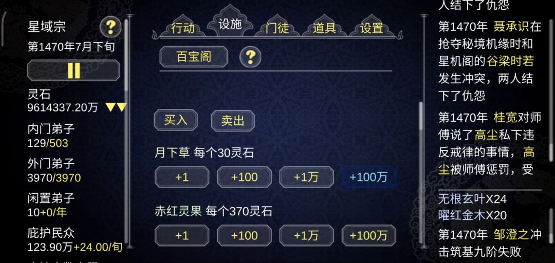 1.感觉交互实在太少了,事件概率也有点低,就是点点点的过程。比如可以适当控制秘境历练。2.门派交流基本没有,只是通过文字显示。比如可以一百年搞个带彩头的交流大会,派弟子去比试什么的。3.修仙修的有点脱离实际。既然有了这么多庇护群众,他们不能上供吗?4.门派缺少刑罚,玩的时候各种陷害背刺。5.弟子消耗太大了,内门弟子对门派贡献完全看不到,就只看到消耗。比如装备丹药这些让掌门去奖励,奖励可以提