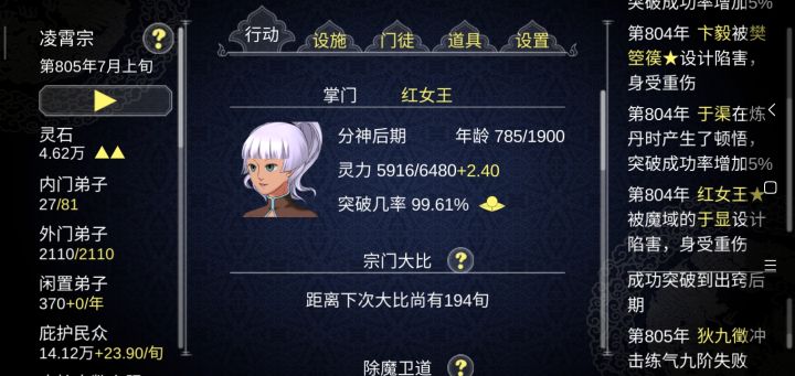 我的fw弟子筑基把了个分神大圆满,不得不说底蕴不足,发展仓促,虽然原地起飞,但是处理起来显得很累。 赐予门下弟子,我只看重三代以内弟子,多余的放养,自有他们师傅去处理。体验下来感觉:装备,丹药这些储备查看非常麻烦
