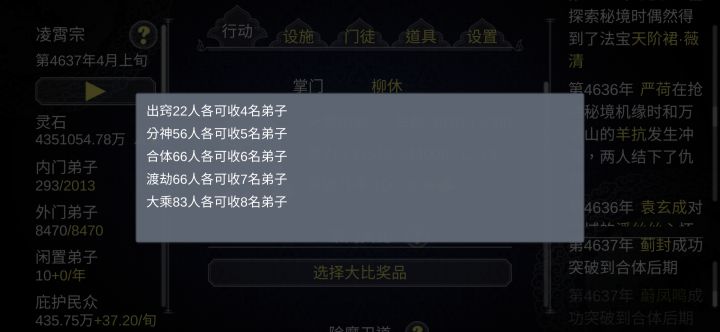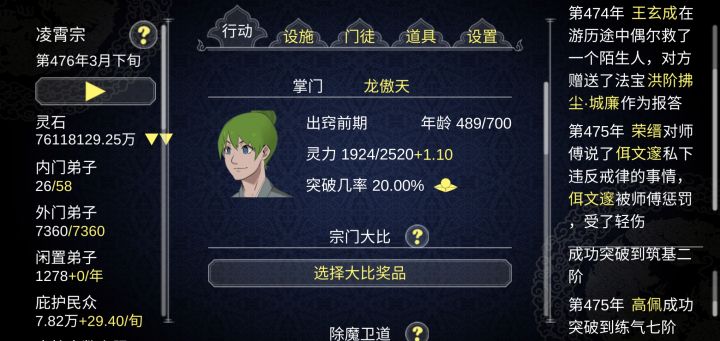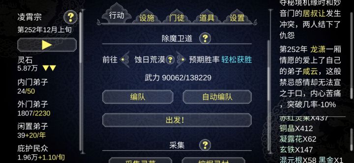 装备一个一个去看,丹药一个一个吃满,设施缺人一个一个去就职(而且就职的时候还要考虑效率)实在不行那个行动界面的除魔卫道能不能弄个一直除魔然后显示难度普普通通再停止