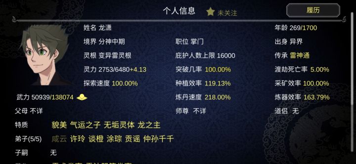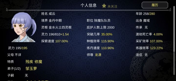 第一目玩通关之后又玩了一阵子,就不收徒,也不给他们结婚第二目感觉太累了就只搞了一个人,一个人飞升就完事