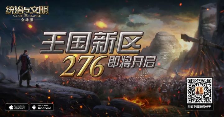 亲爱的领主:《统治与文明》游戏将于今日18:00准时开启王国276,新王国欢迎您,快来加入游戏!《统治与文明》是一款全球性大型多人在线史诗战争策略手机游戏,力求通过震撼的画面和实时战争策略真实还原中世纪魔幻战场。您将作为一名领主,在全新的发展玩法下建立属于自己的帝国,发展文明,训练军队,击杀怪兽,集结你的盟友,攻城掠地,击败来自全世界的敌人,夺取世界的王座!为荣耀而战!