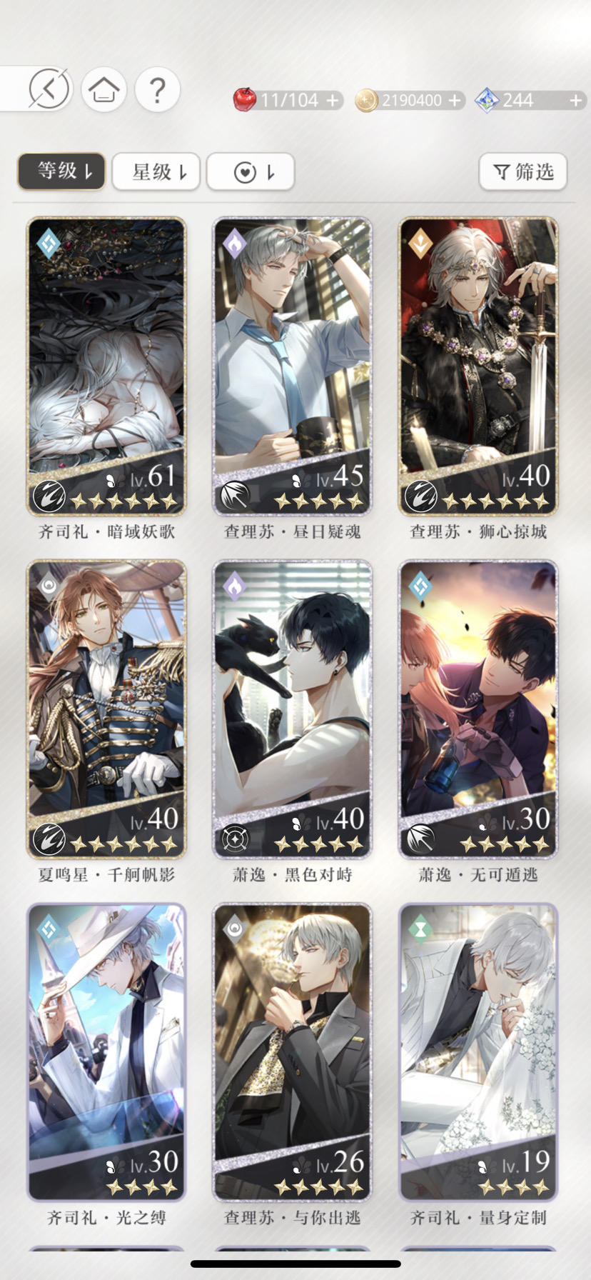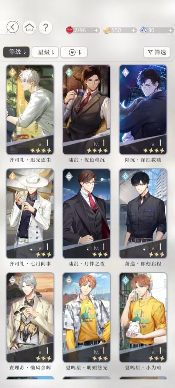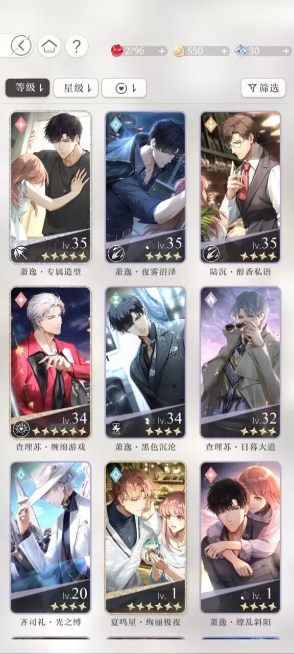 玩了三天了,目前有这些卡,比较喜欢77和11,这次的卡池还有二十几抽保底,抽完保底可以有一个200的自选和140书简的兑换,如果抽到11了,那我是给他叠花,还是把66给兑换出来,给11叠1花呀,目前卡关卡等级了,不知道灵感用来刷啥就全刷那个外婆小铺了,求指教
