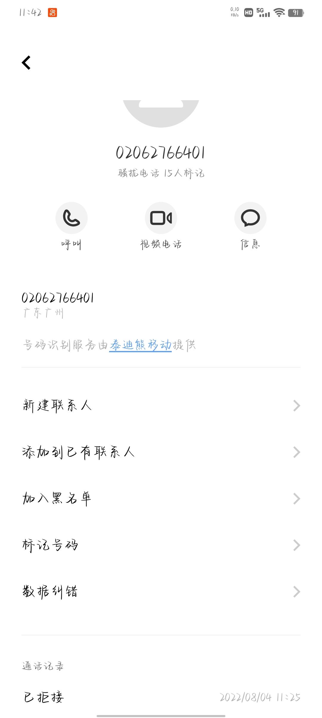 当成骚扰电话给拒了,拒接之后就发信息过来了,我
