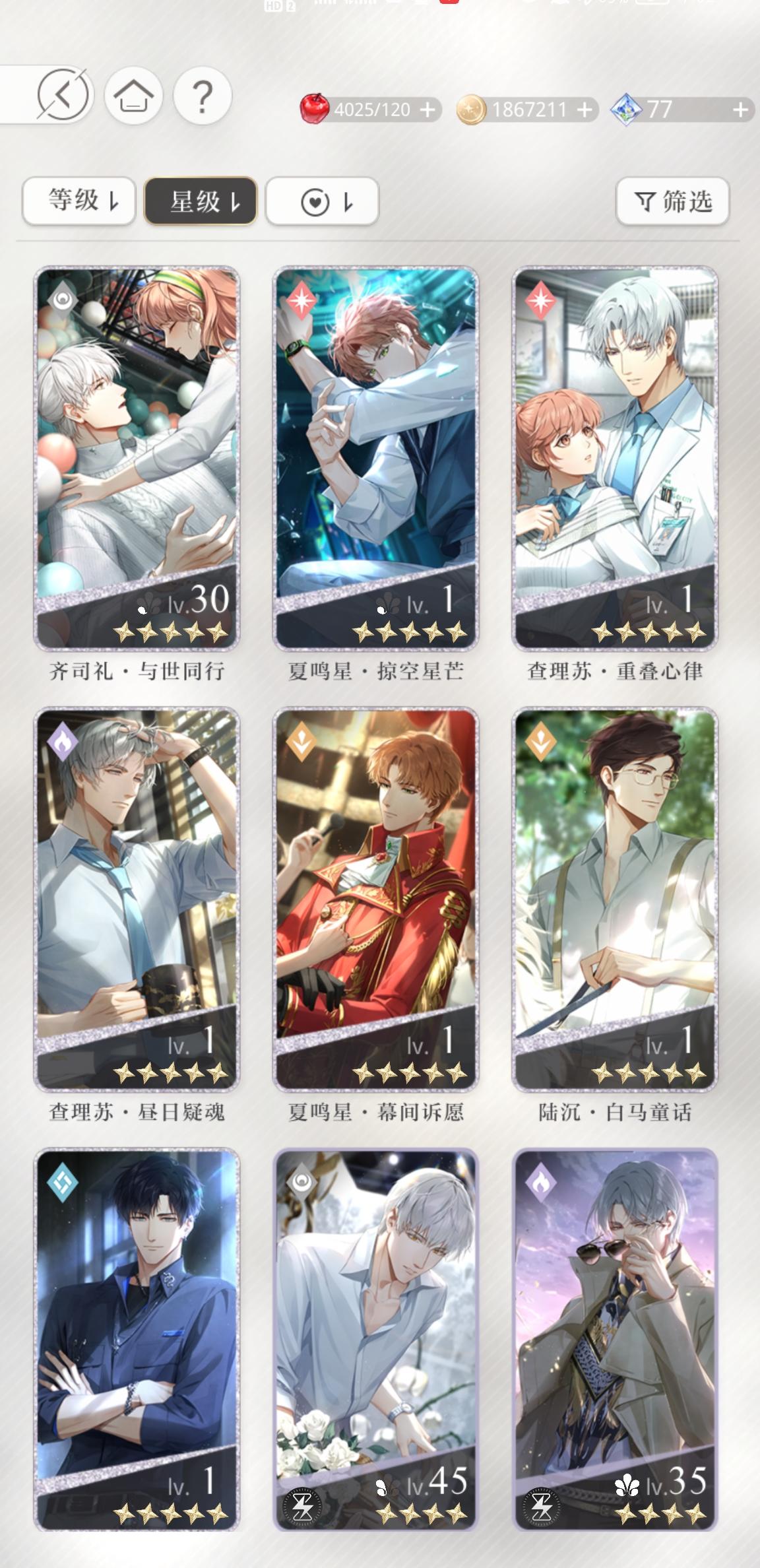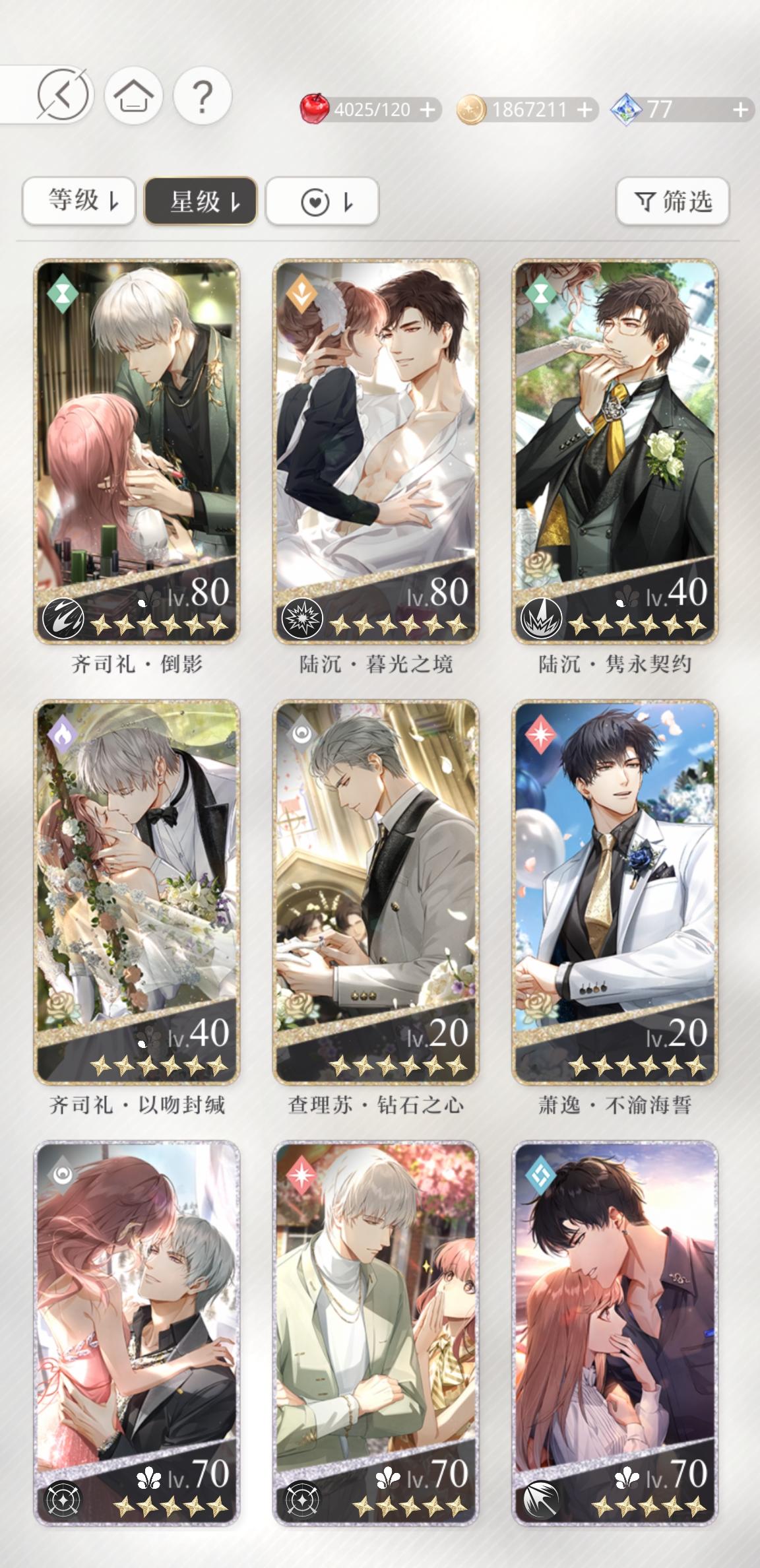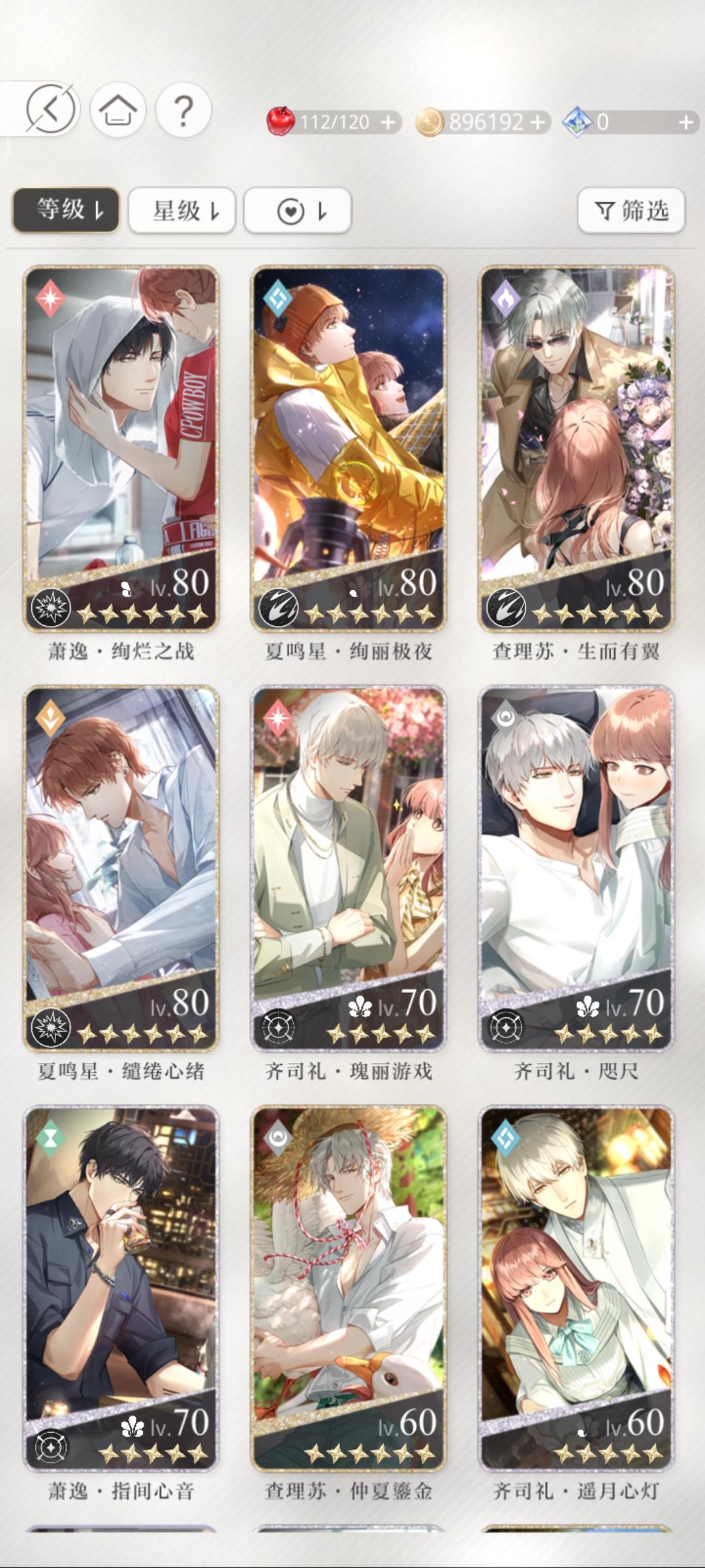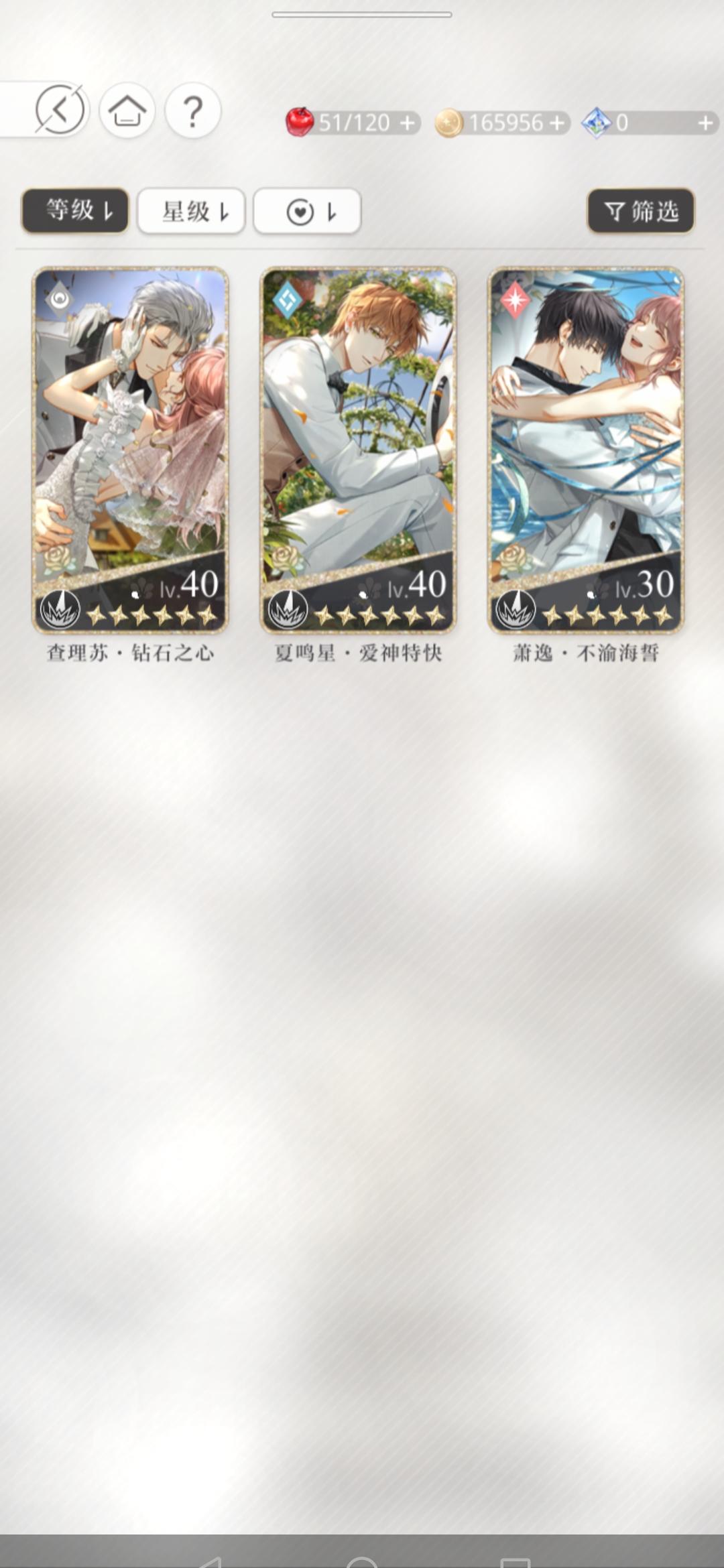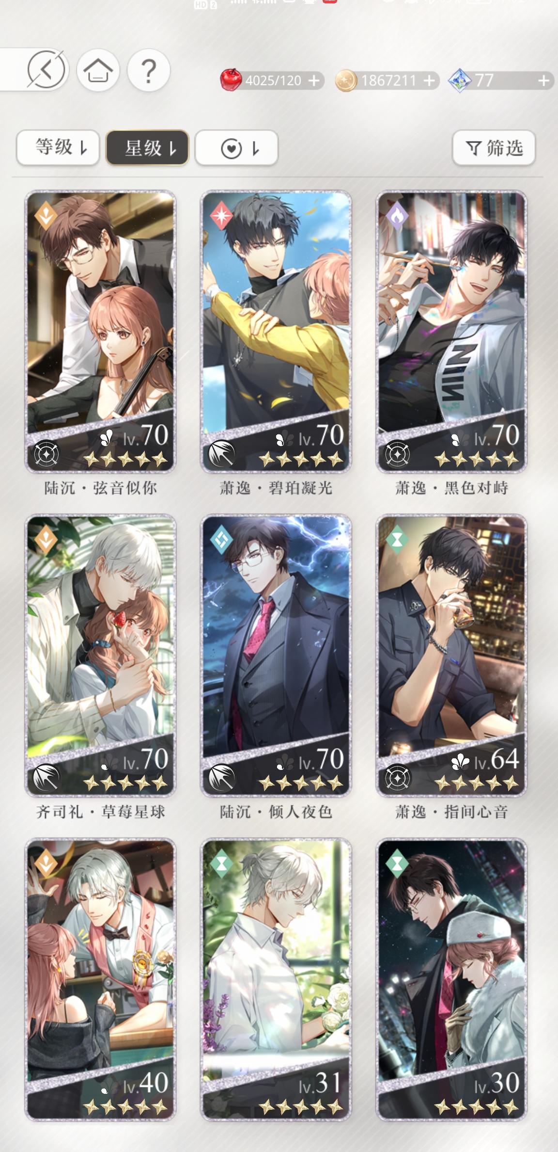 我那张萧逸的六星和这两个满花满属性的五星是开头就定下来养的,这三张属性的一直没换过。