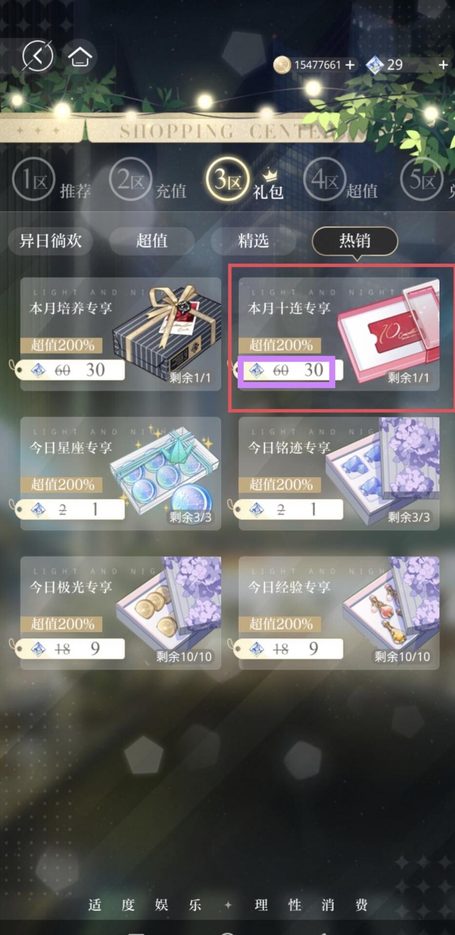 请问商城里用20北极星买的十连只能买一次是吗?