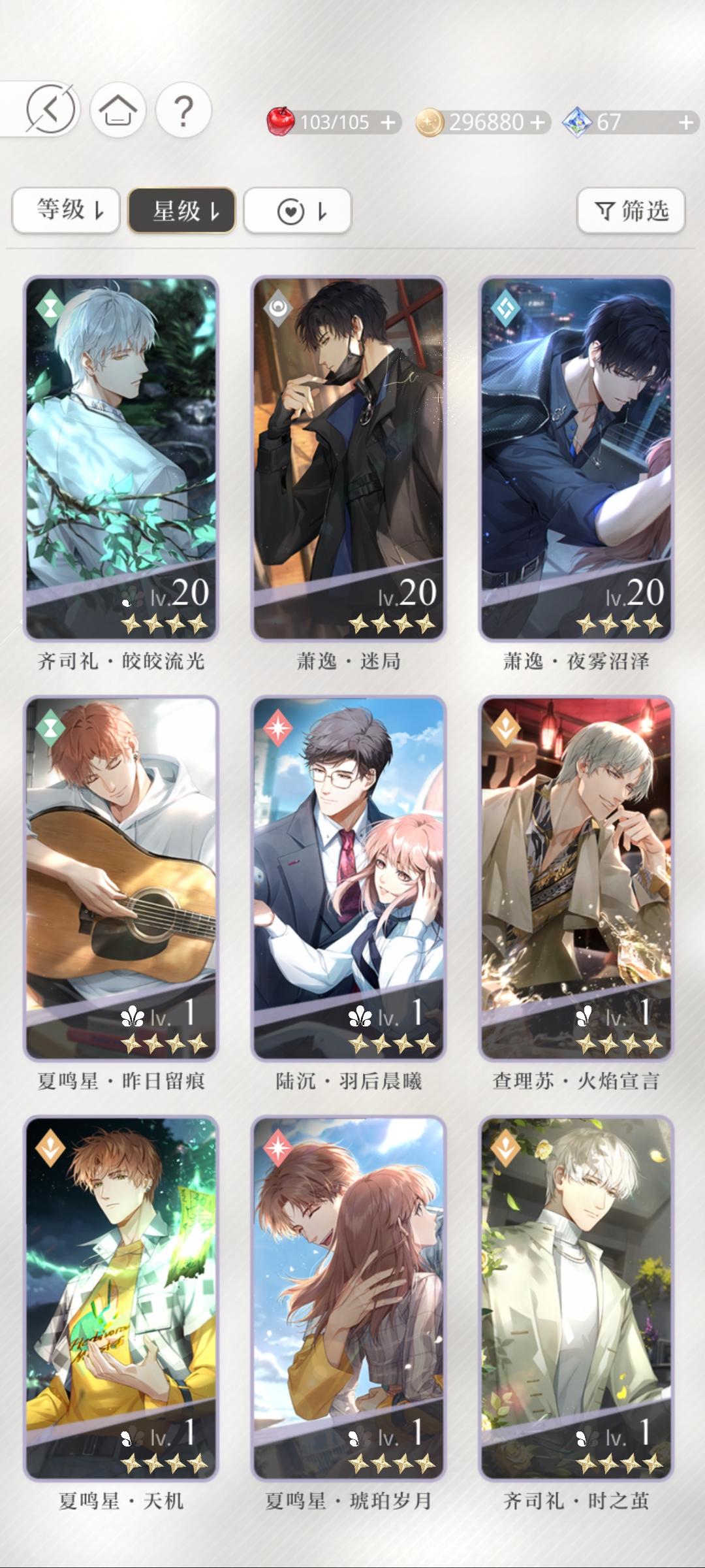 再见了,男人们说实话,玩的时间长了就有点无聊,没什么可玩性,感觉像打卡一样……防沉迷导致我两个月没上游戏,生日卡池什么的全部误掉了记录一下~拜拜啦