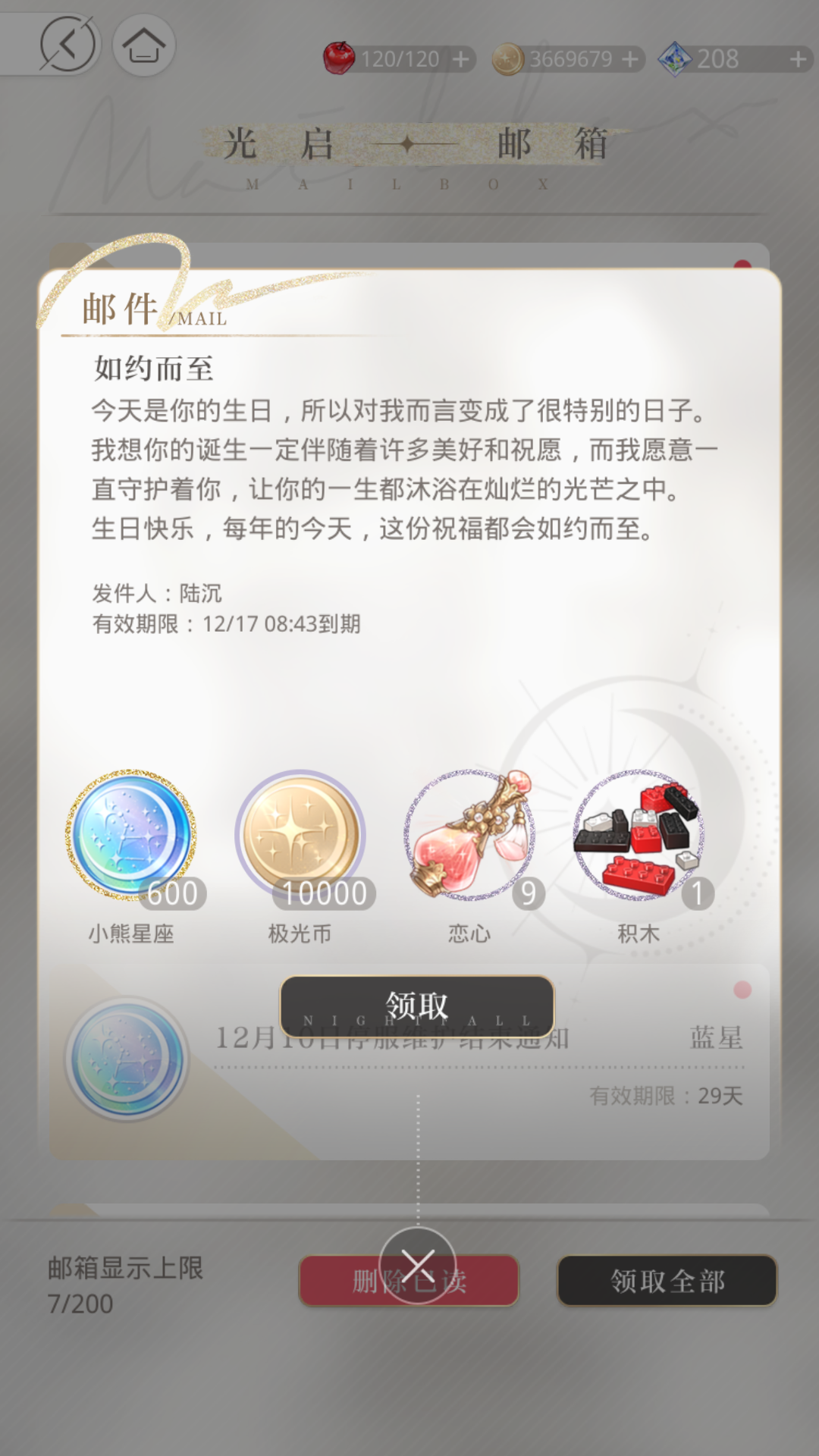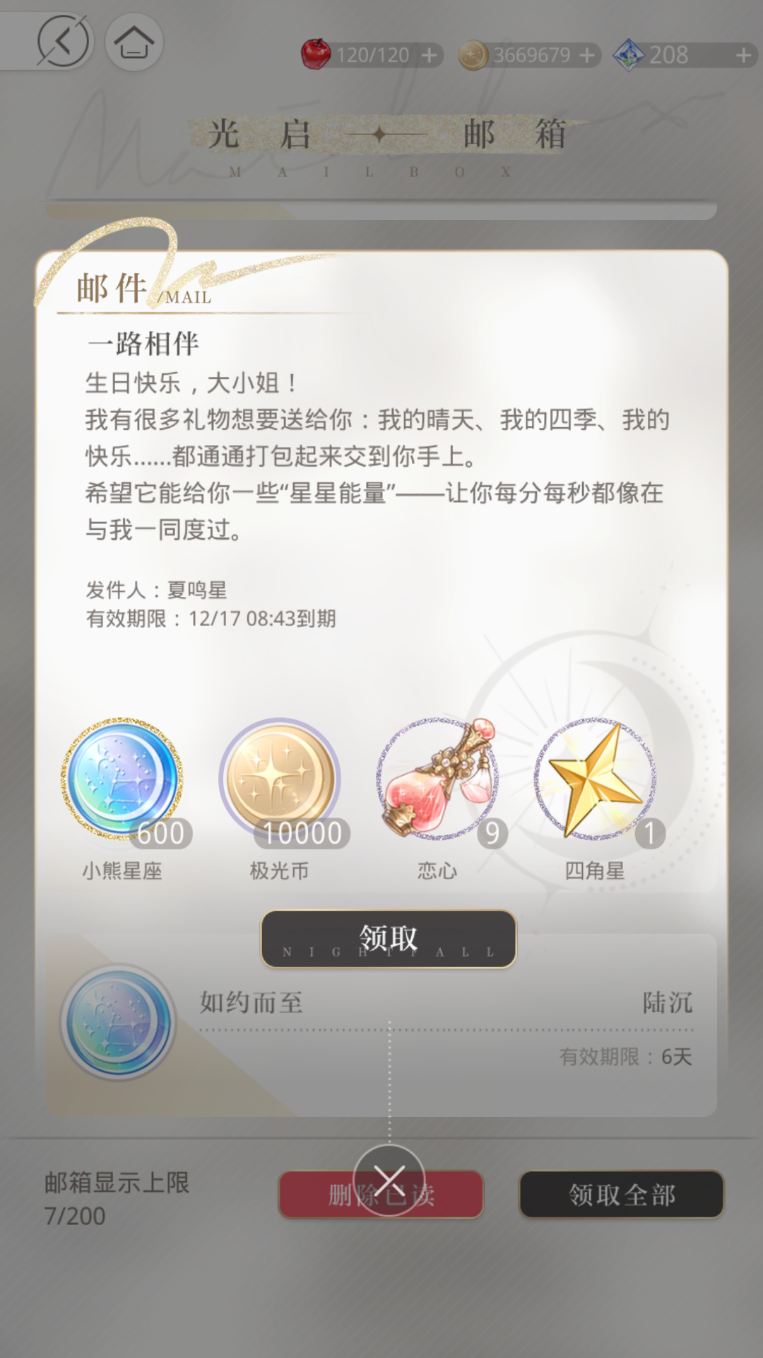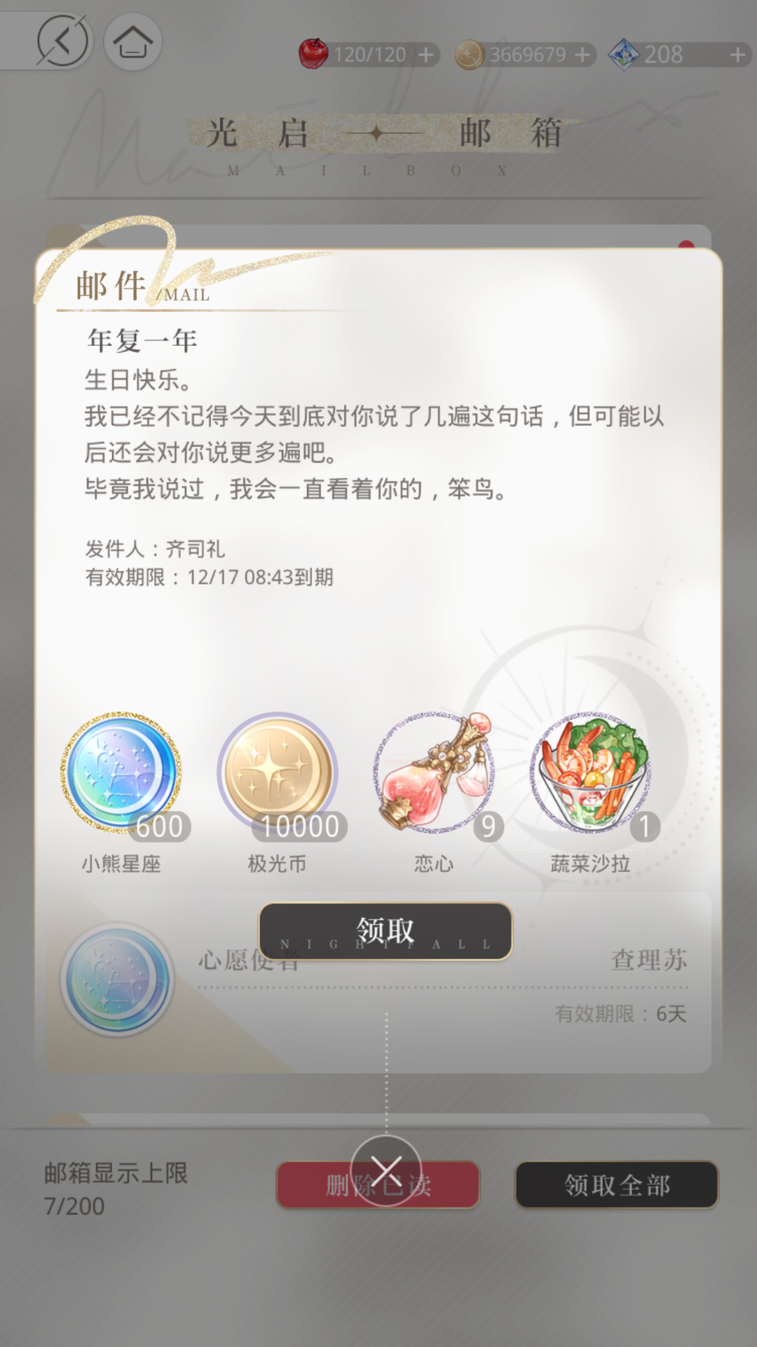 姐妹们一定要在主线设置好生日,一年一次,到设置好的生日这天送10抽,老香了