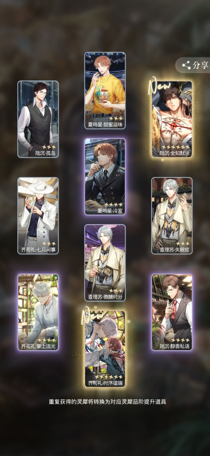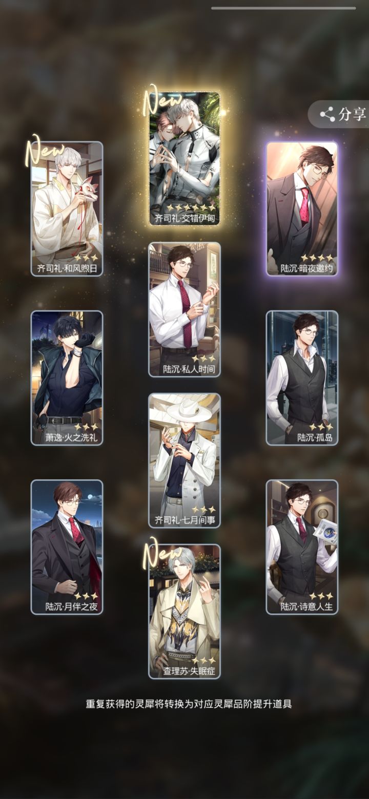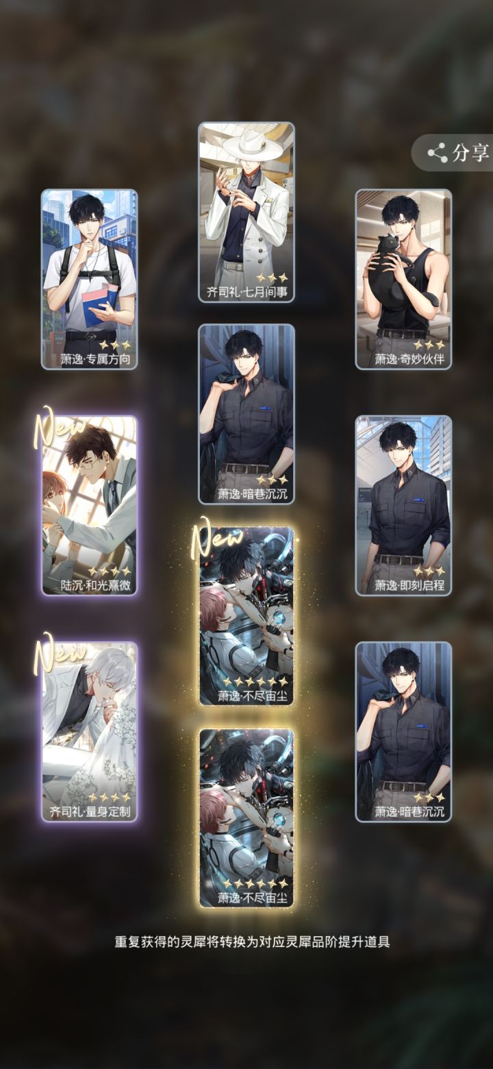 200抽8金 我爱你光头 你每年都对我很好ps:歪了一个常驻 200的还没换 等做完任务 想看看能不能拿个称号#欧皇附体 #光与夜之恋 #抽卡