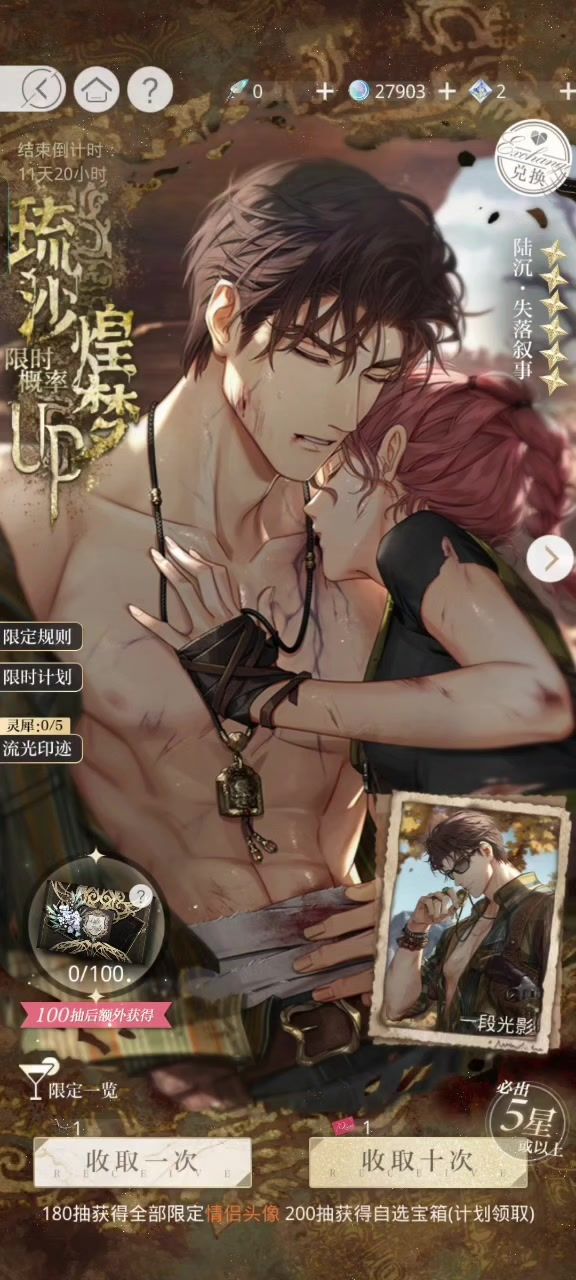 我发誓是傻白甜的意思,两个号只歪了一次。其他全是限定#光与夜之恋 并不是很欧,一个平均30,一个平均50。