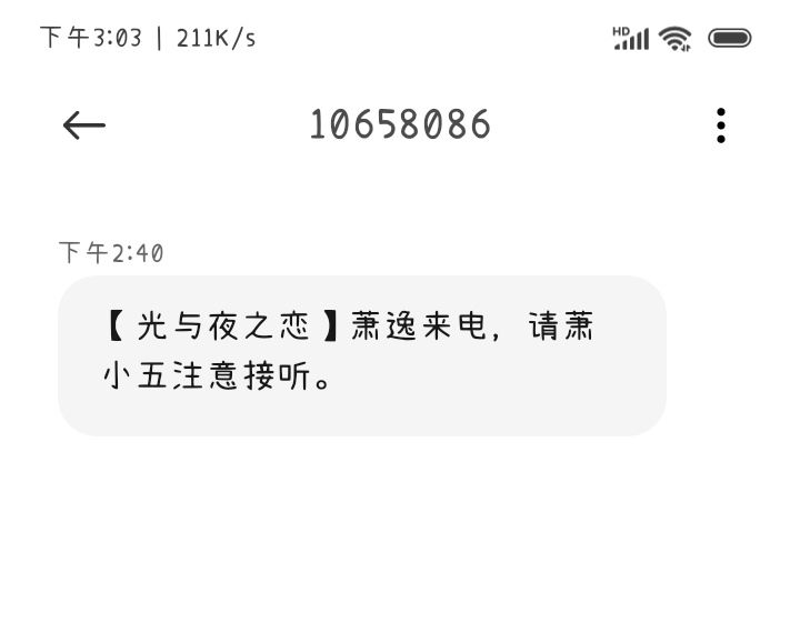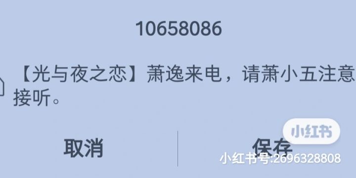 萧逸打电话给我了,是因为七夕吗!七夕快乐,可是我没空接电话,回拨了电话可是……光头你再给我一次机会………😭