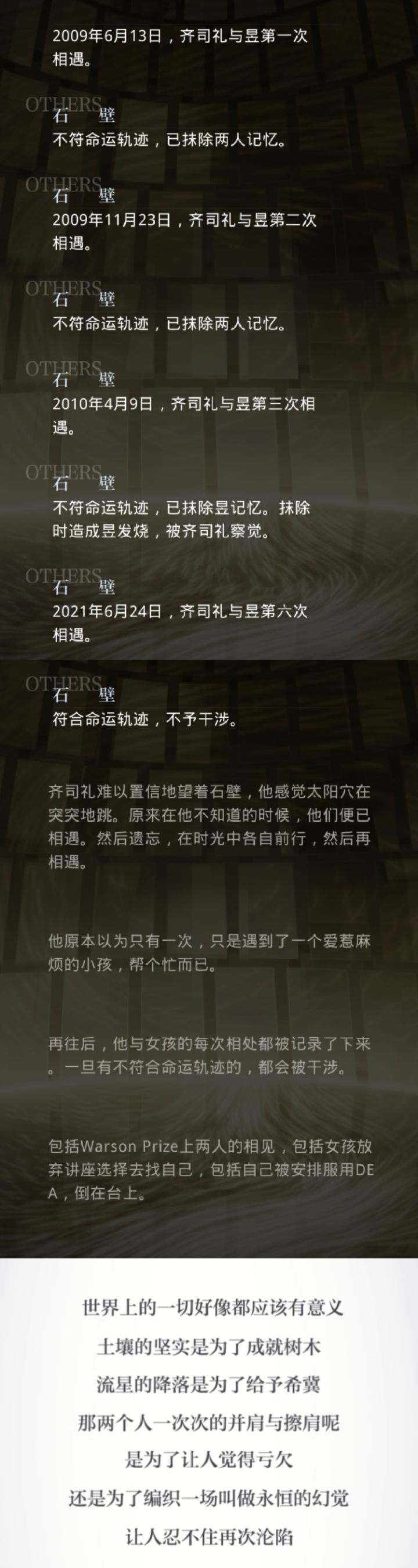 趁着难度下降努力通关的我快被这两章刀死了我一开始真的不太喜欢740这个角色,还吐槽过觉得他的毒舌很像高三的语文的老师。后面渐渐发现他真的很好说是毒舌其实一直在包容我的小性子特别是看别人生生团圆那张卡的录屏 真的哭泣一百年一千年 他该等了多久啊还有就是11真的很虐听说接下来几章更虐就好好创作