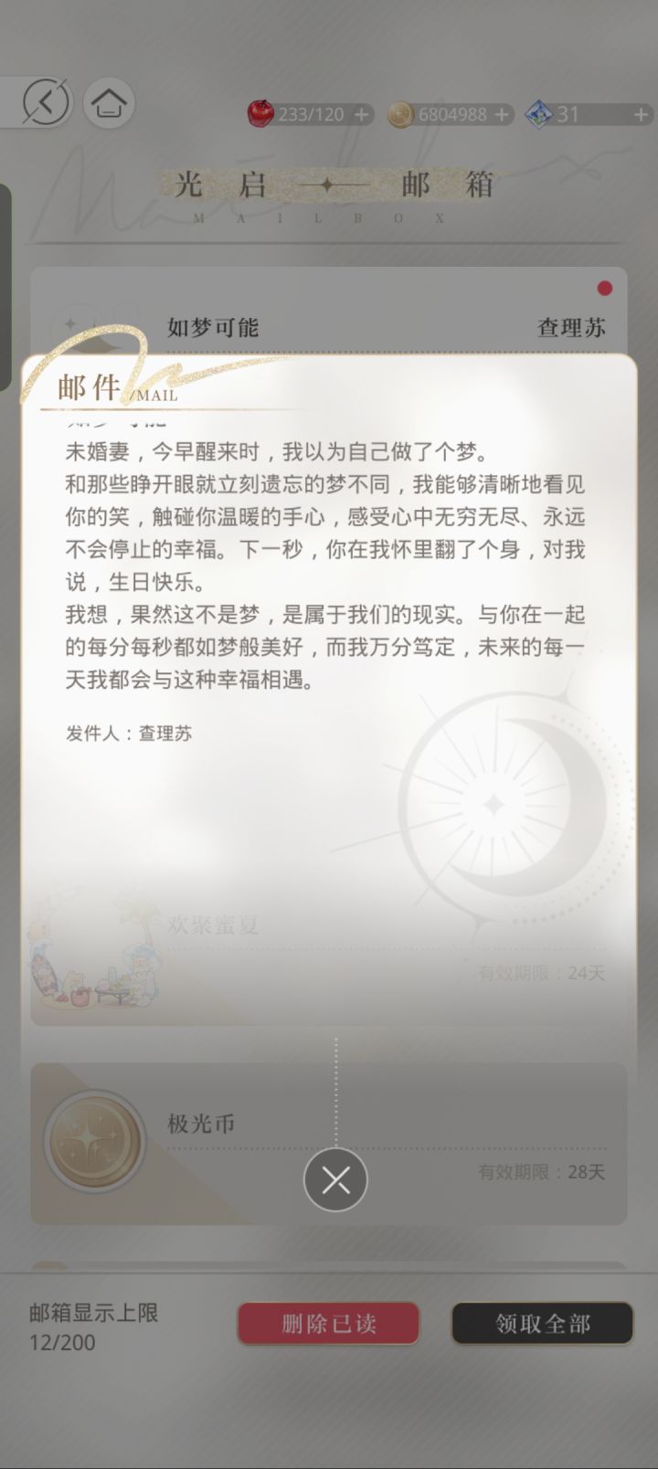 光与夜之恋查理苏生日活动!