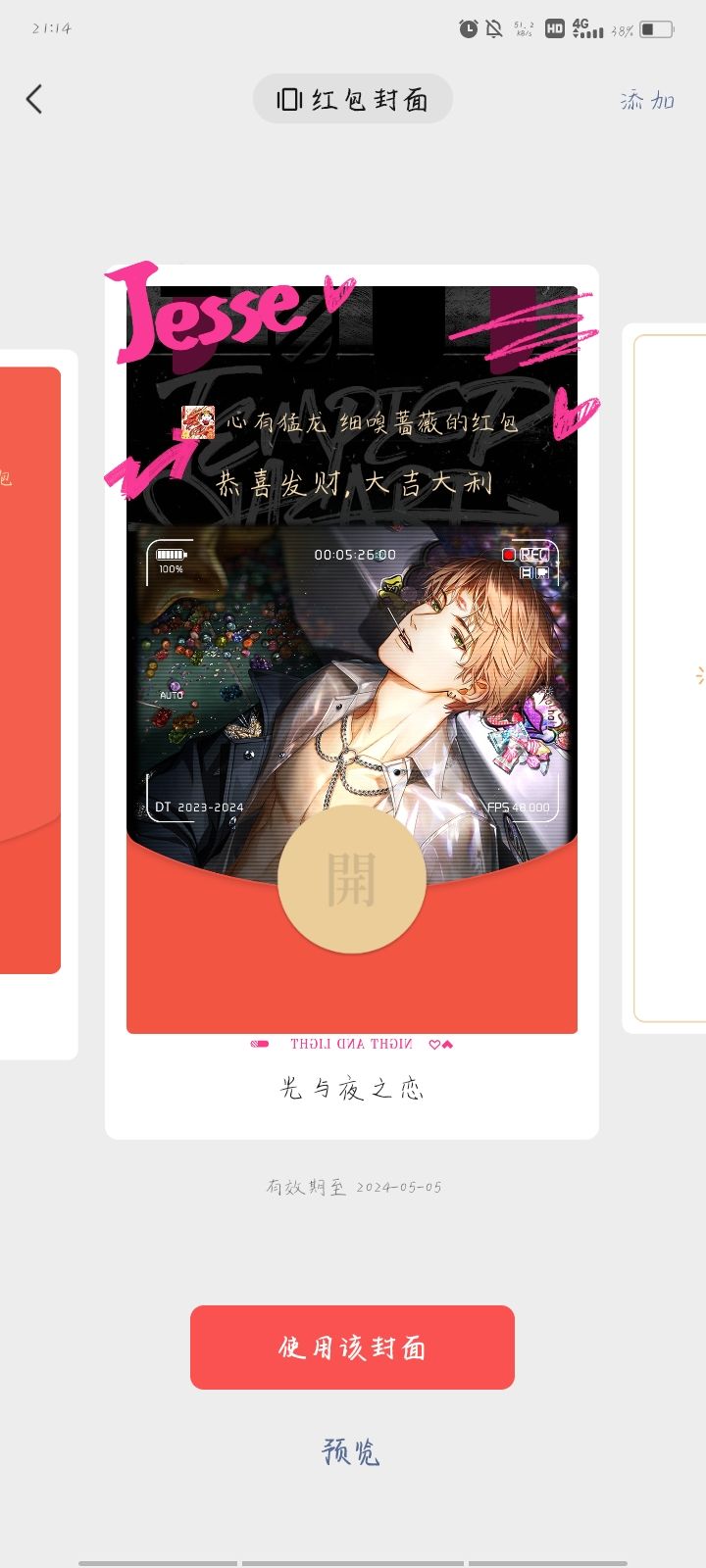 喜欢77和00,但是主要是7推去年没有抢到77但抢到了11和00今年活动进行了一半才发现在游戏上抢,又一直上课(游戏在平板上)只有最后一天让别人帮抢但又一直出错,没想到一点才复制码兑换也得到了,真的很感动,温柔地汤圆宝宝的默默守护当时喜欢77这个卡开了新号但抽到的是汤圆,看来是命中注定#晒晒我的游戏红包封面#光与夜之恋