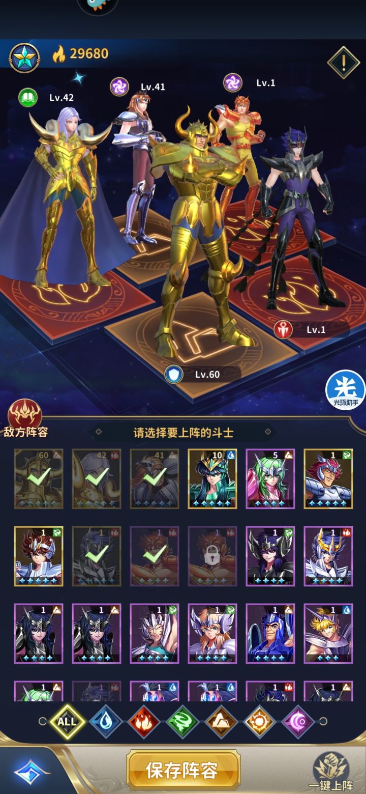写给新手的前期攻略,不喜勿喷,适合微氪,月卡党,基金党,6元以及0元党这游戏其实开局还是很重要的,因为抽卡概率太低了,基本全看脸的,开区前100抽还能抽点东西,后面基本全靠低保了!所以开区多刷几个号,基本0元党副本刷到3-20左右除了开局系统送的10连抽以外,差不多加游戏礼包兑换的物资就可以5次10连抽了。也就等于60抽了。开区10连推荐黄金斗士:主选:水瓶座卡妙,白羊座穆,狮子座艾奥里亚(本