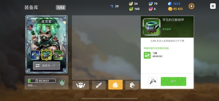 自己看装备栏那里显示什么,显示代码错误!你们自己看装备出现什么bug,之前的bug不能出兵和放不了技能,有一些蘑菇按住以后点出兵出不了,然后就是点技能点不动,我的机型是13promax别说我手机有问题!