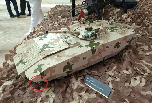在刚刚开幕的阿布扎比防务展上,我国的北方工业公司再次推出一款新型重型步战车,和之前在珠海航展上推出的59坦克底盘重型步战车所不同的是,这次推出的重步战是在目前大热的VT-4主战坦克底盘上进行的改装,从现场展出的模型来看,这款改装显然是着重针对巷战的特殊环境设计的,不仅在防护方面下了大工夫,而且在火力分配上也有针对性的对侧后等薄弱方向的进行了强化。主动轮在前,车是倒过来的从展出的模型细节来看,为