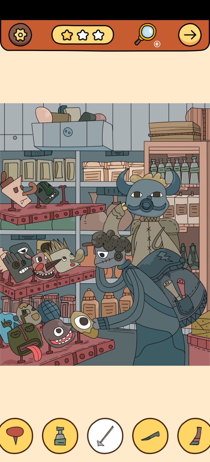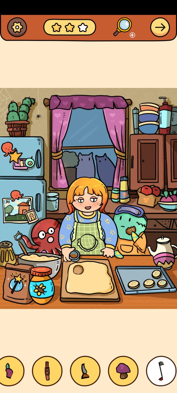 4.点击墙上鹿头上的胡萝卜到窗户外的雪人头上,得雪人头(6)。