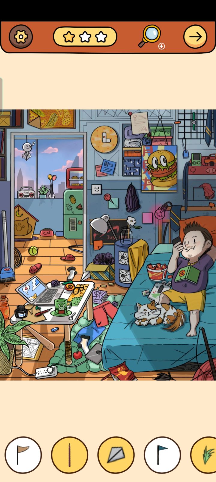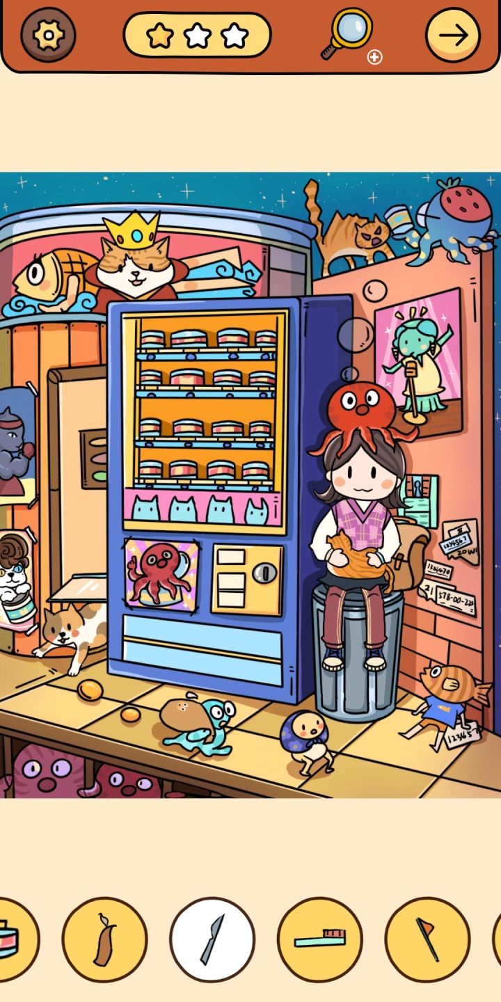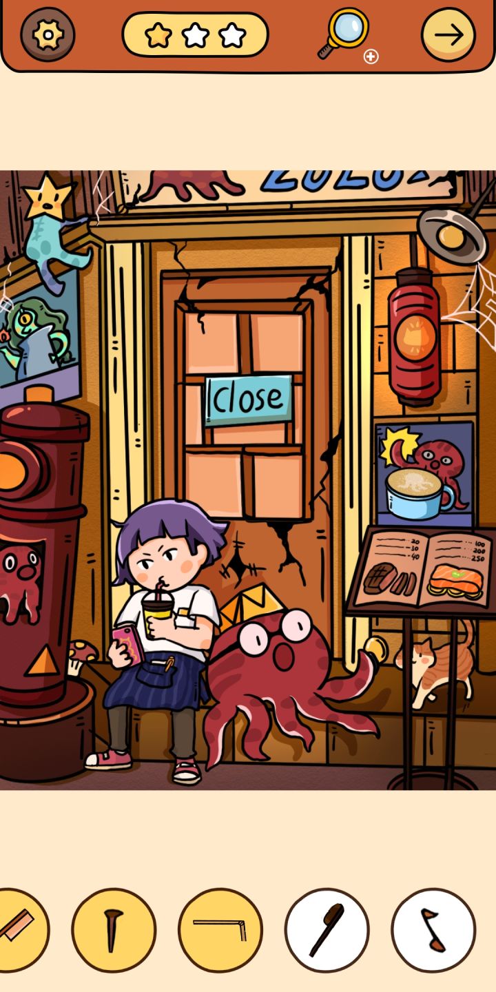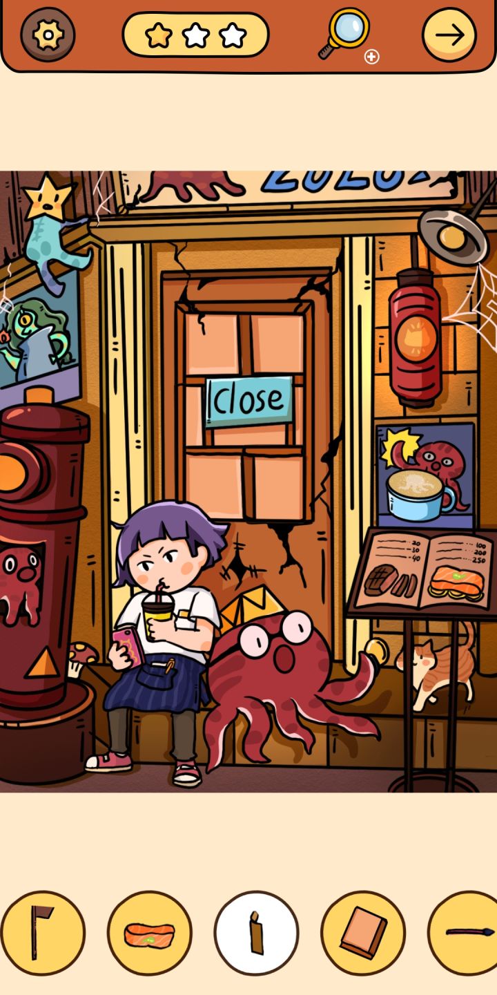 7.摇晃手机,圣诞树上出现一个放大镜,点击得问号(8)。